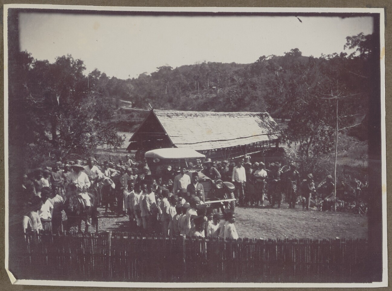 In het dorp trekt de auto veel aandacht van de plaat...