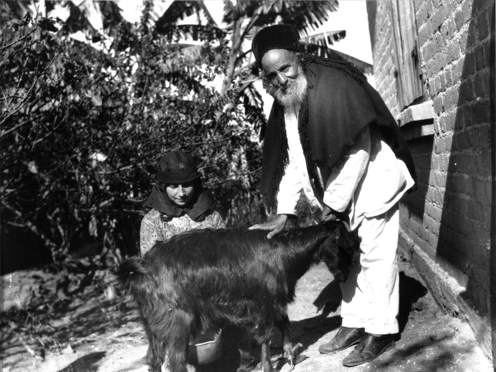 Jemenitische vrouw en man met geit