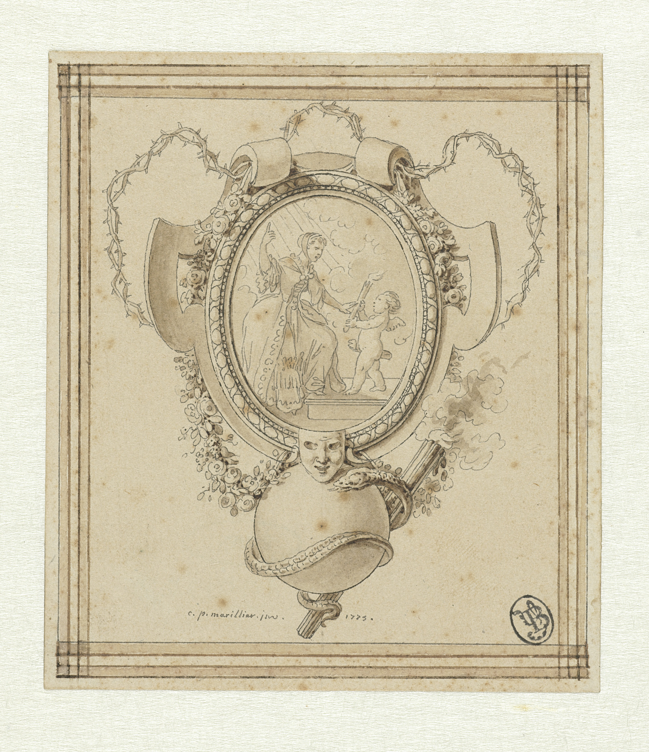 Ontwerp voor een titelprent met de Nederlandsche maa...