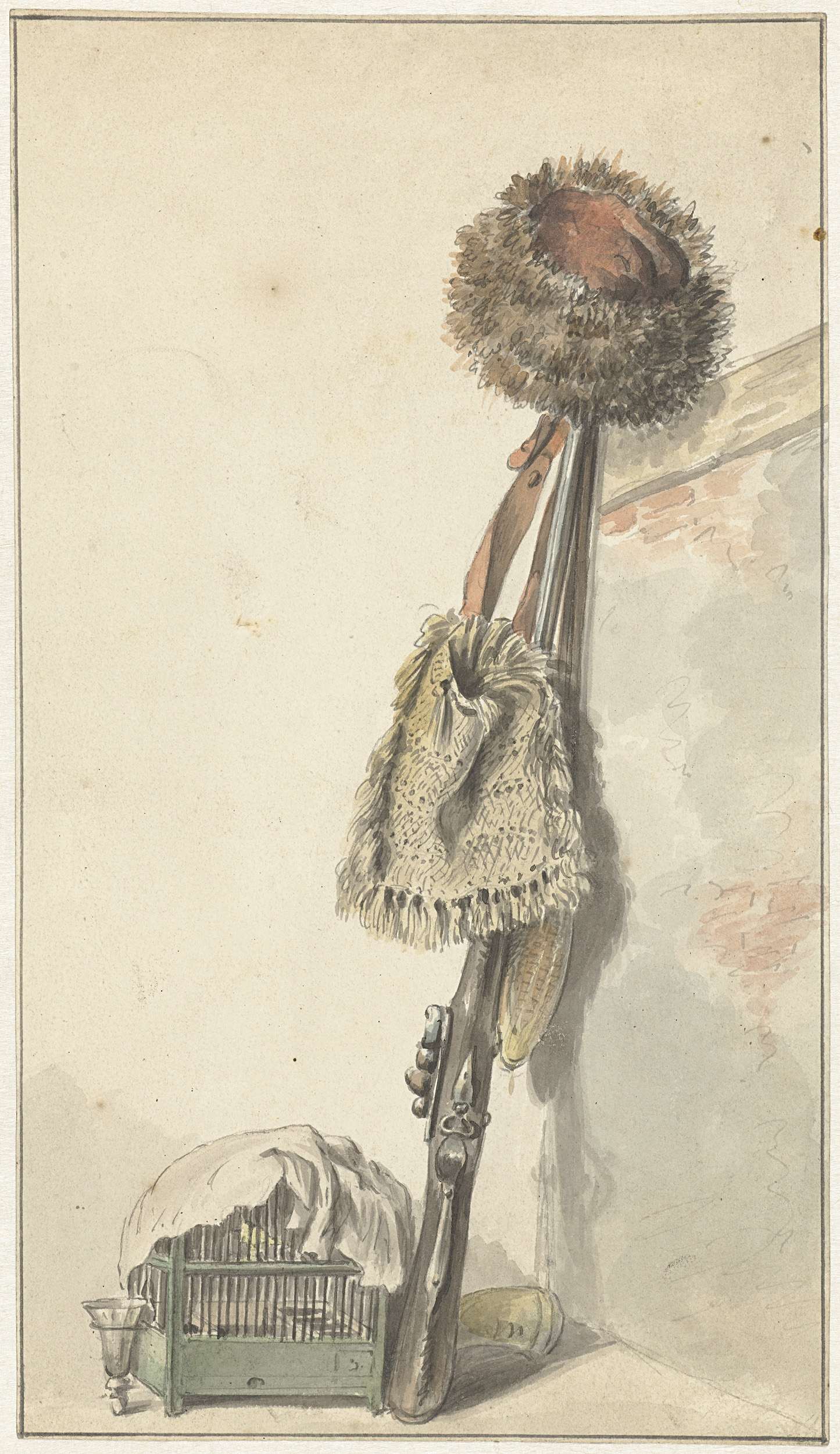 Jachtstilleven met vogelkooi
