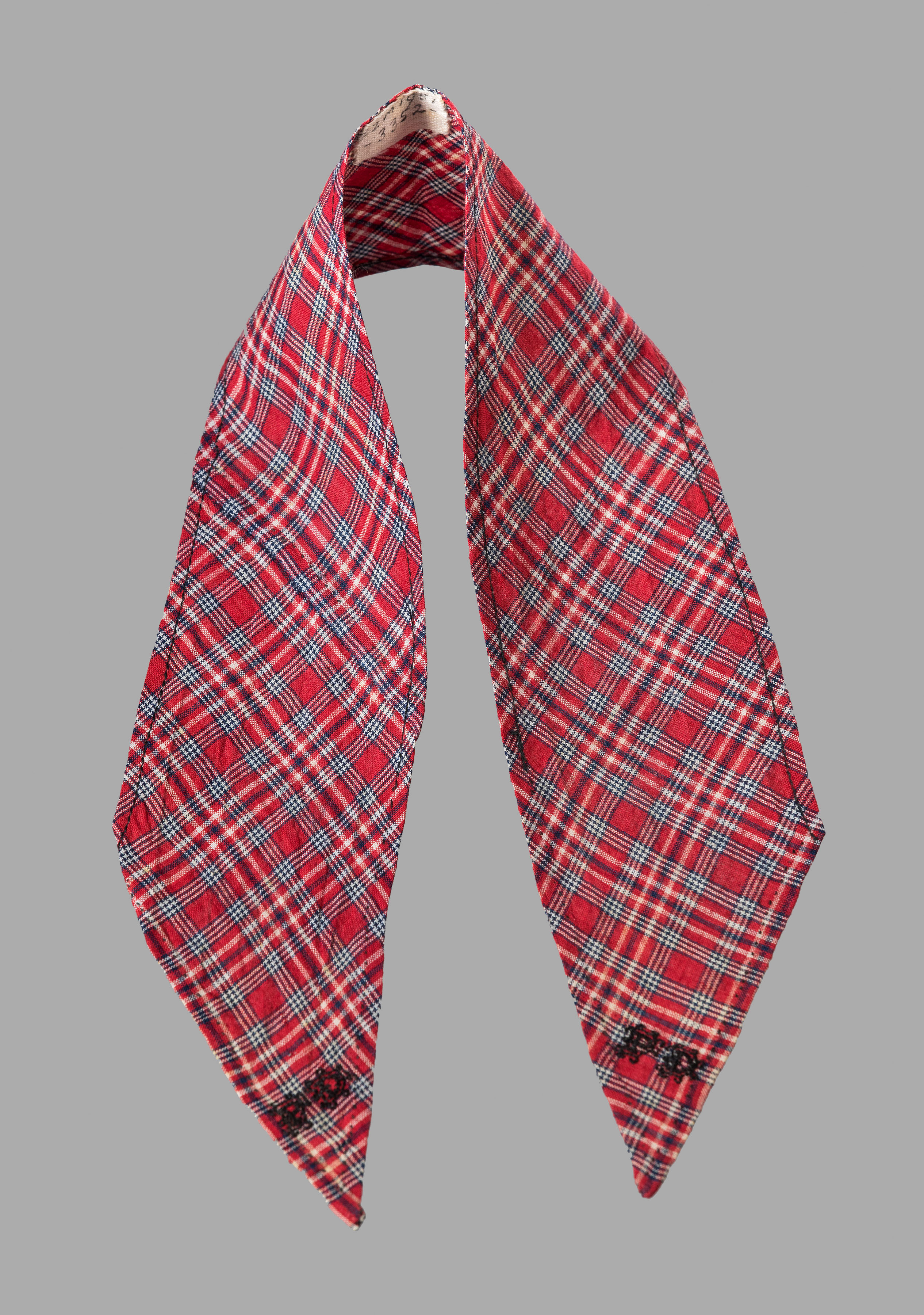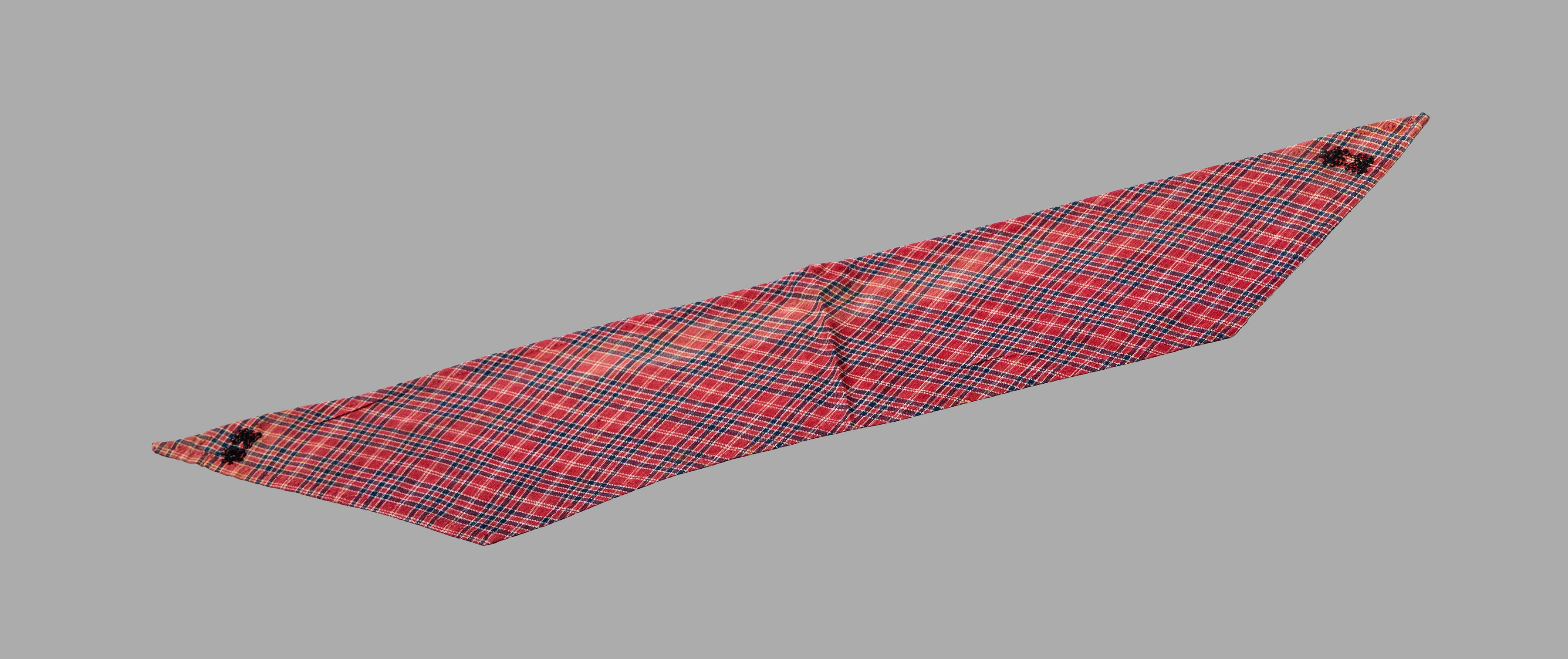 Borsik van damast met rood/witte bloemen