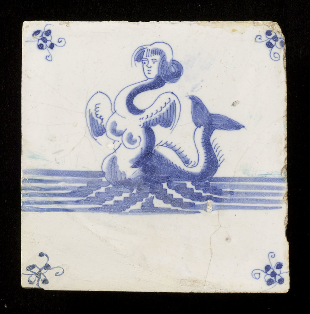 Tegel van keramiek, tinglazuur, voorstellende een ze...