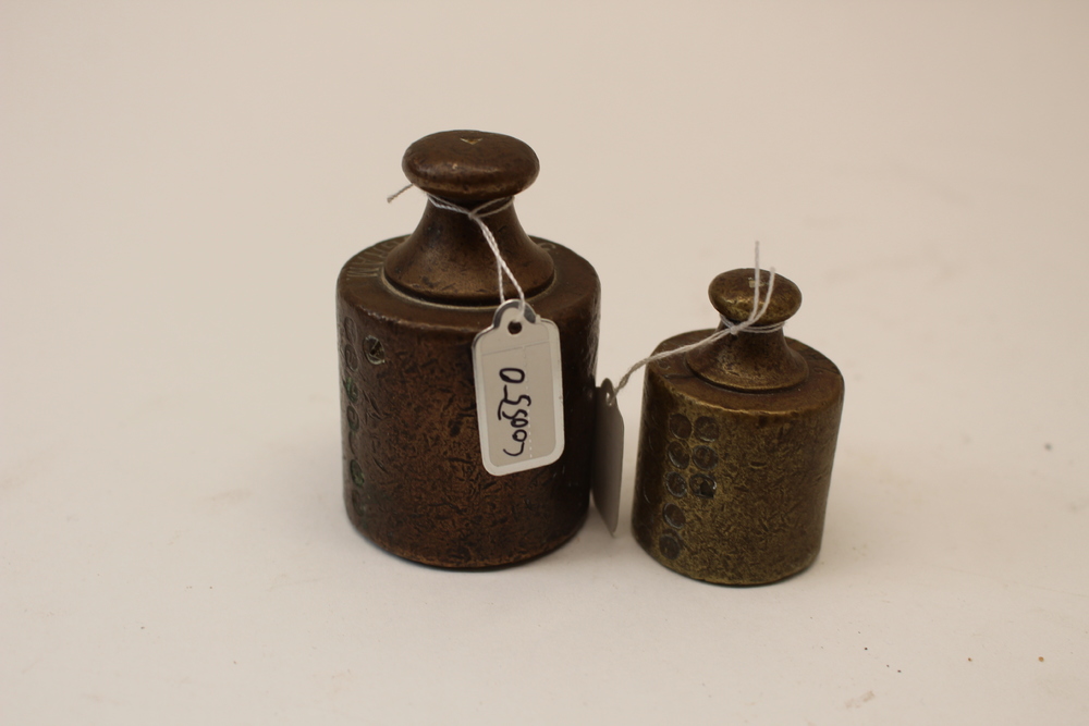 Koperen gewichten met ijkmerken