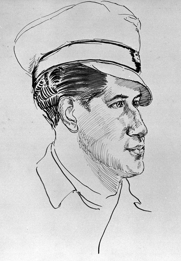 Portretkop van man met officierspet