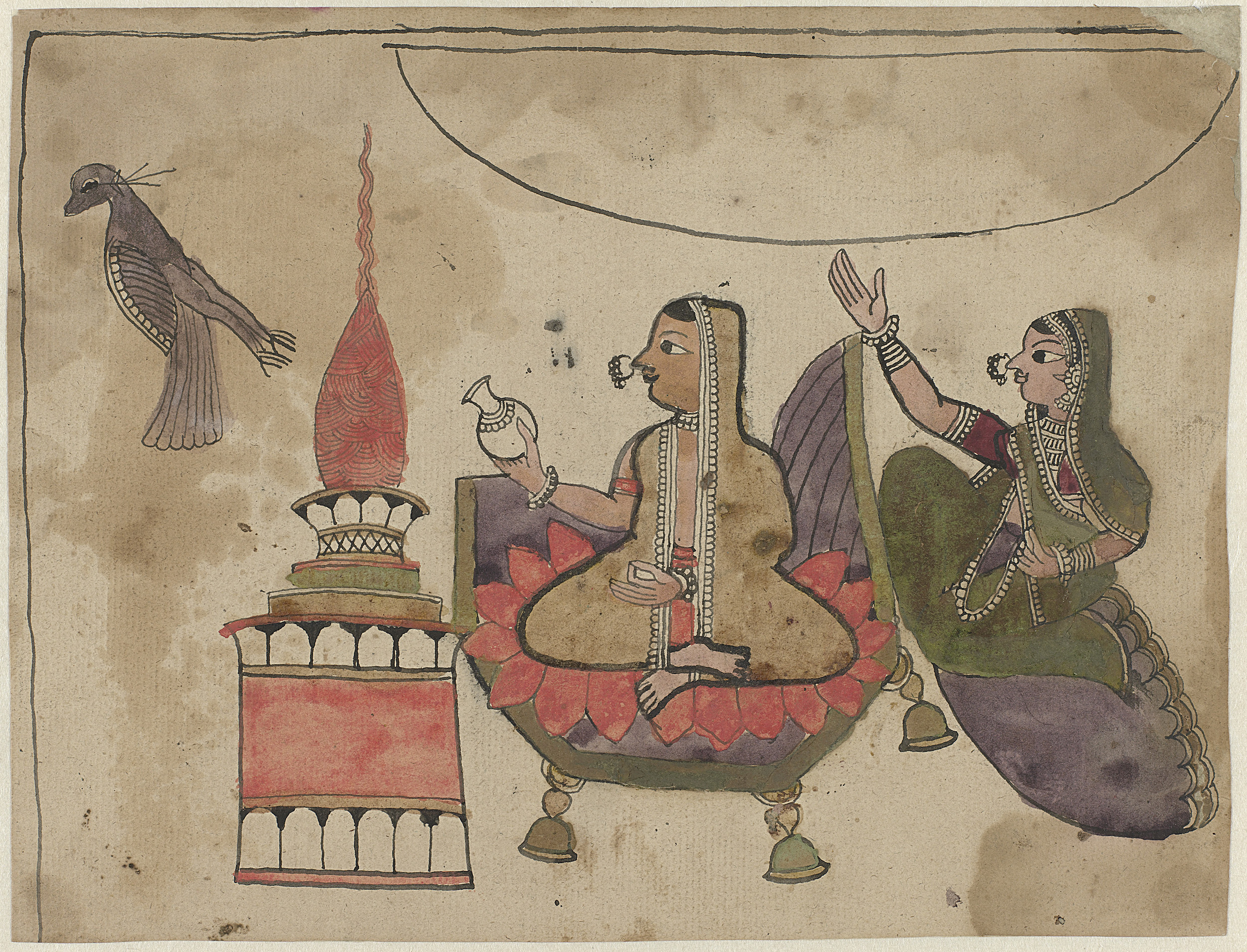 Malavashri ragini, knielende vrouw met Lotusbloem vo...