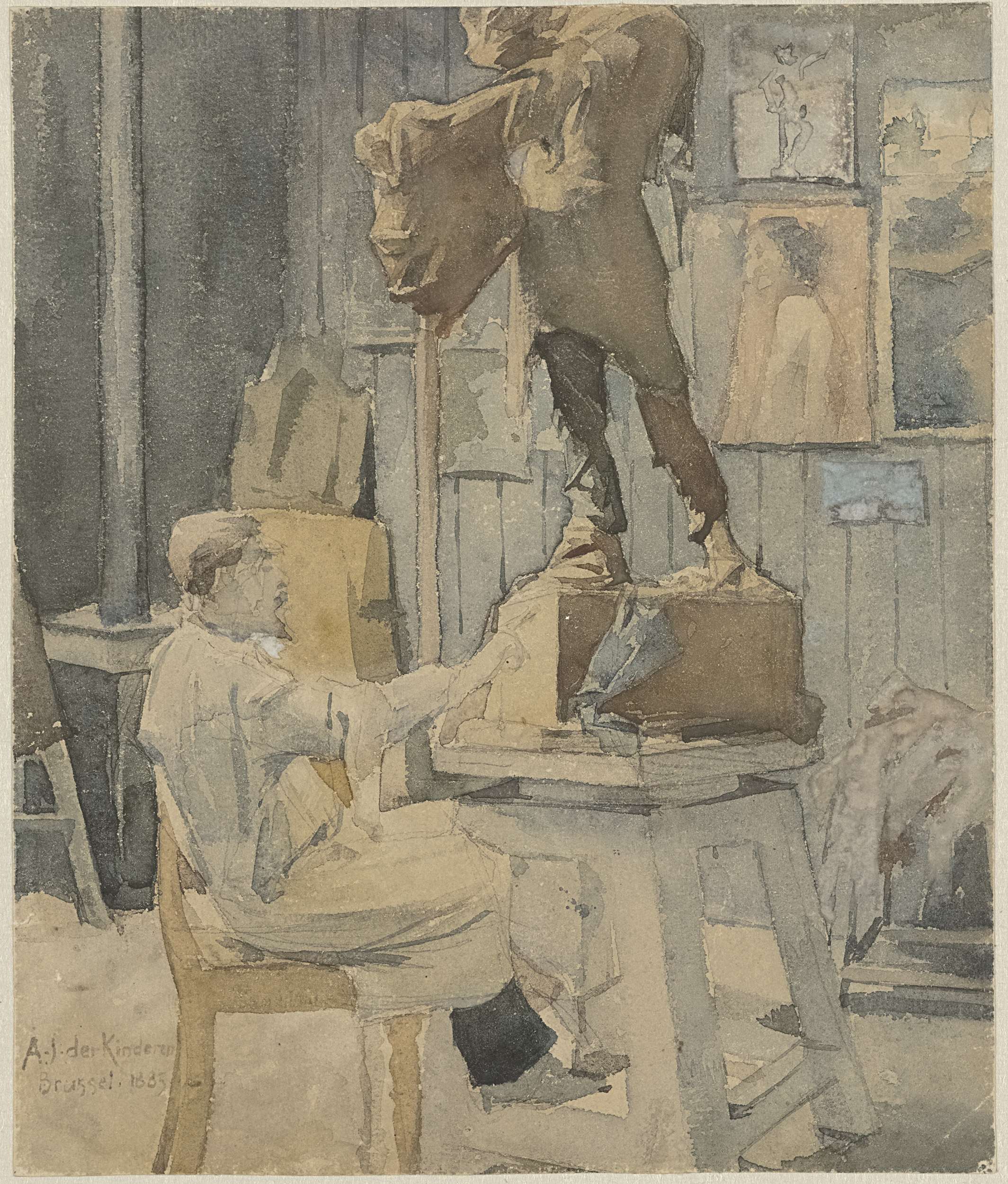 Jan Toorop in een beeldhouwersatelier