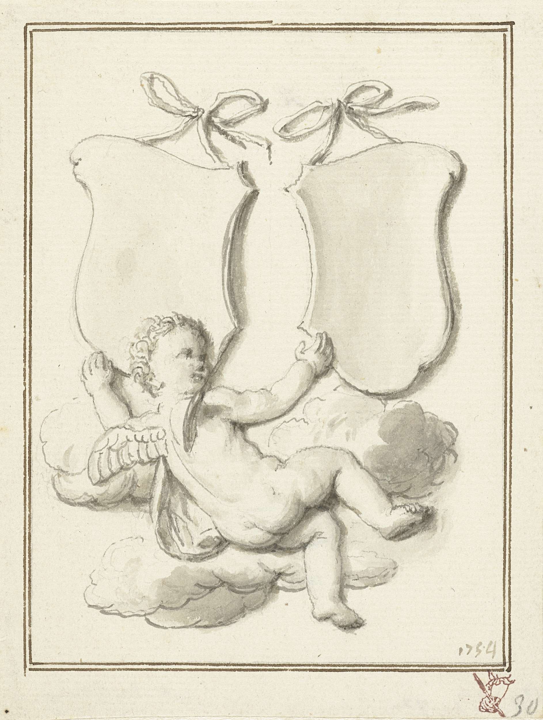 Putto met twee wapenschilden