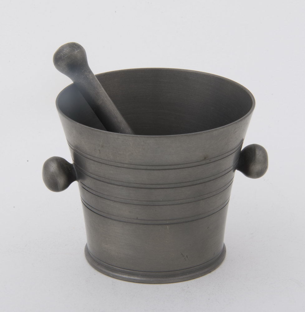 Vijzel van oud tin, vervaardigd door Metaalwarenfabr...