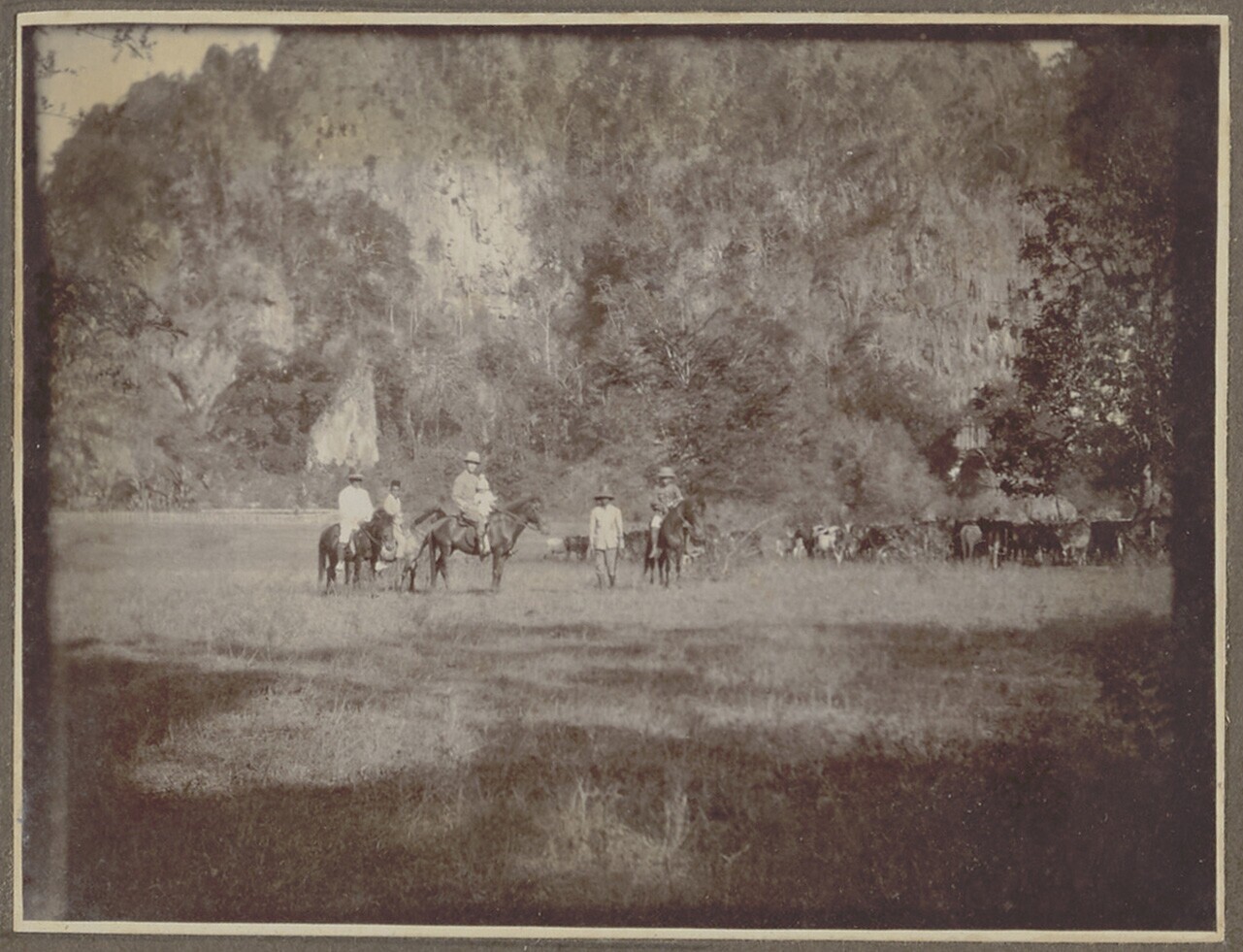 De Javaanse veedrijvers te paard bij hun kudde in de...