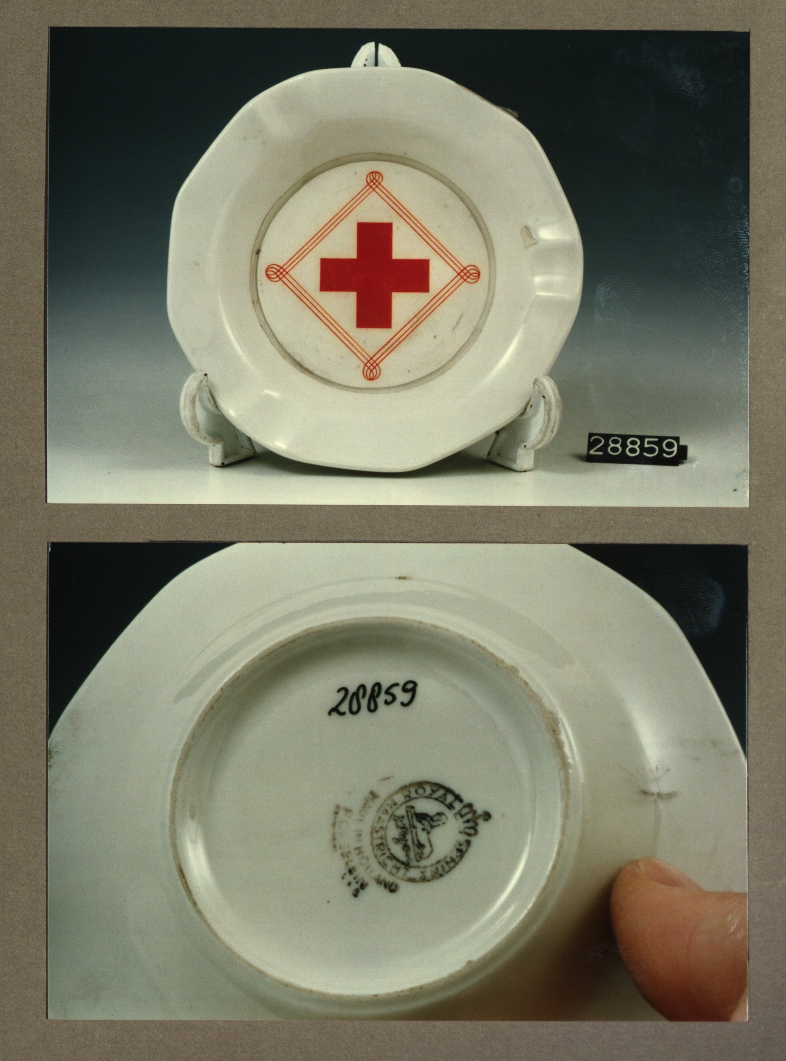 Asbak, model Europa met decor Rode Kruis