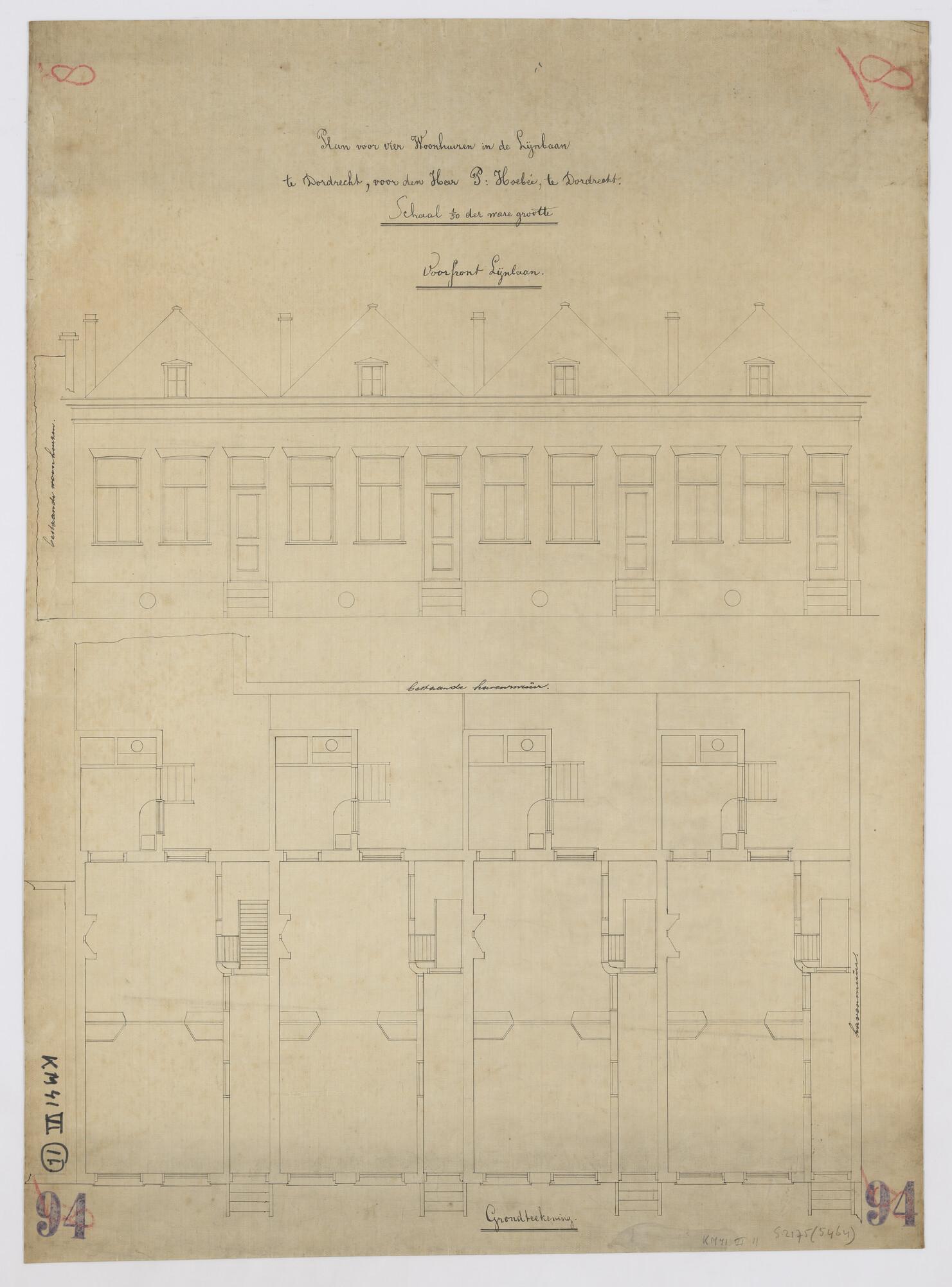 Bouwplan voor vier woonhuizen aan de Lijnbaan te Dor...
