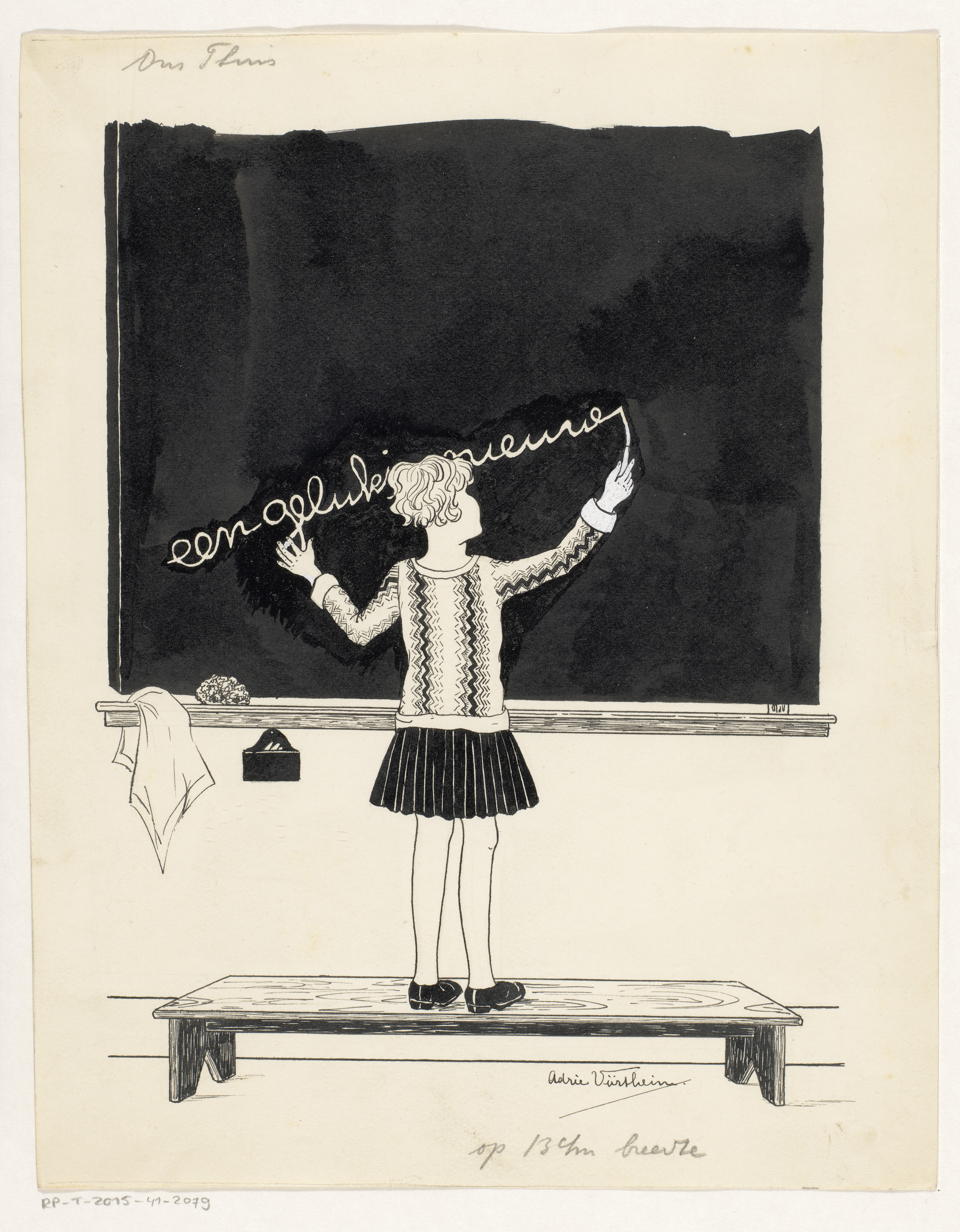 Meisje schrijft nieuwjaarswens op schoolbord