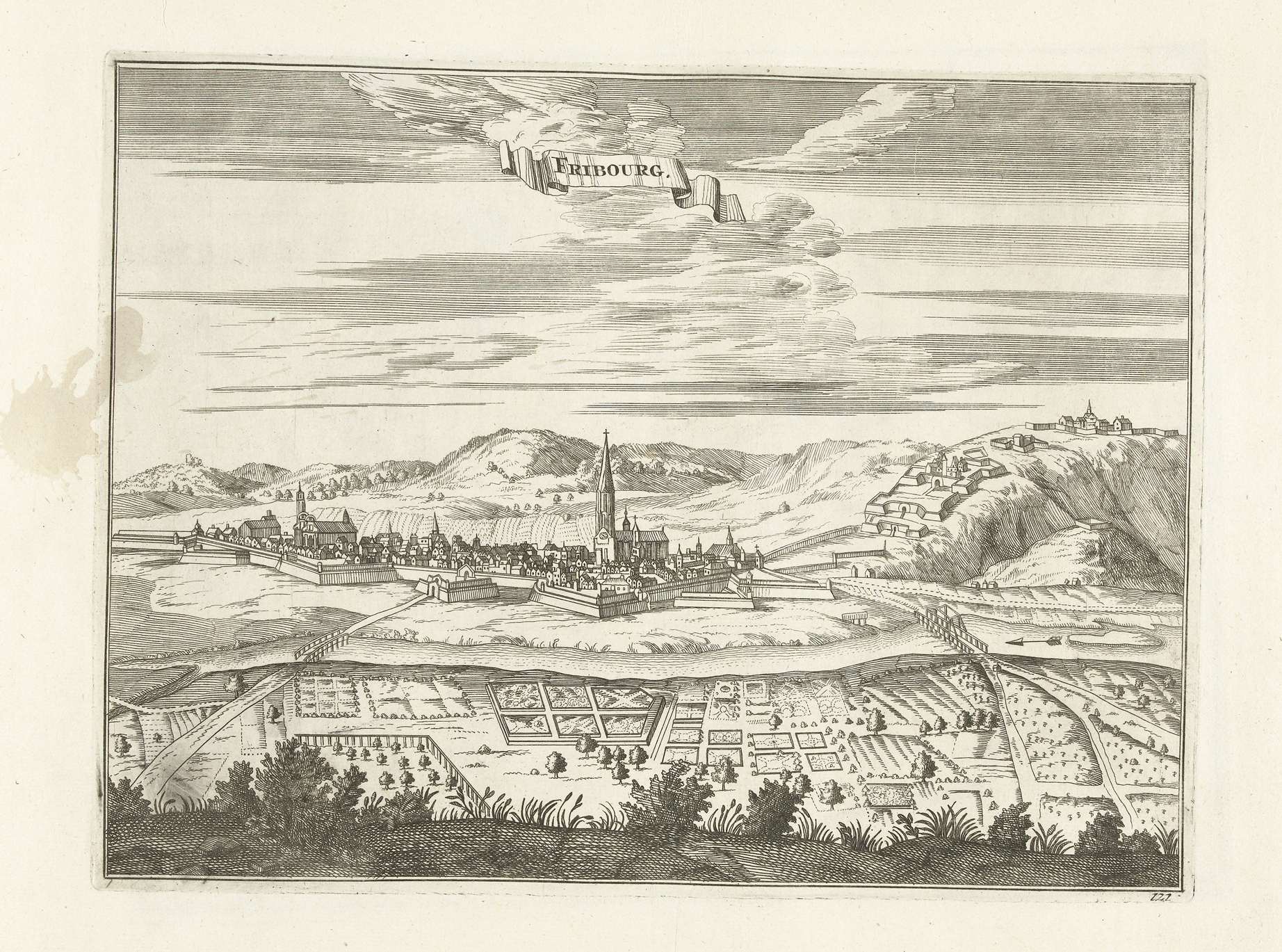 Plattegrond van Fribourg, ca. 1702