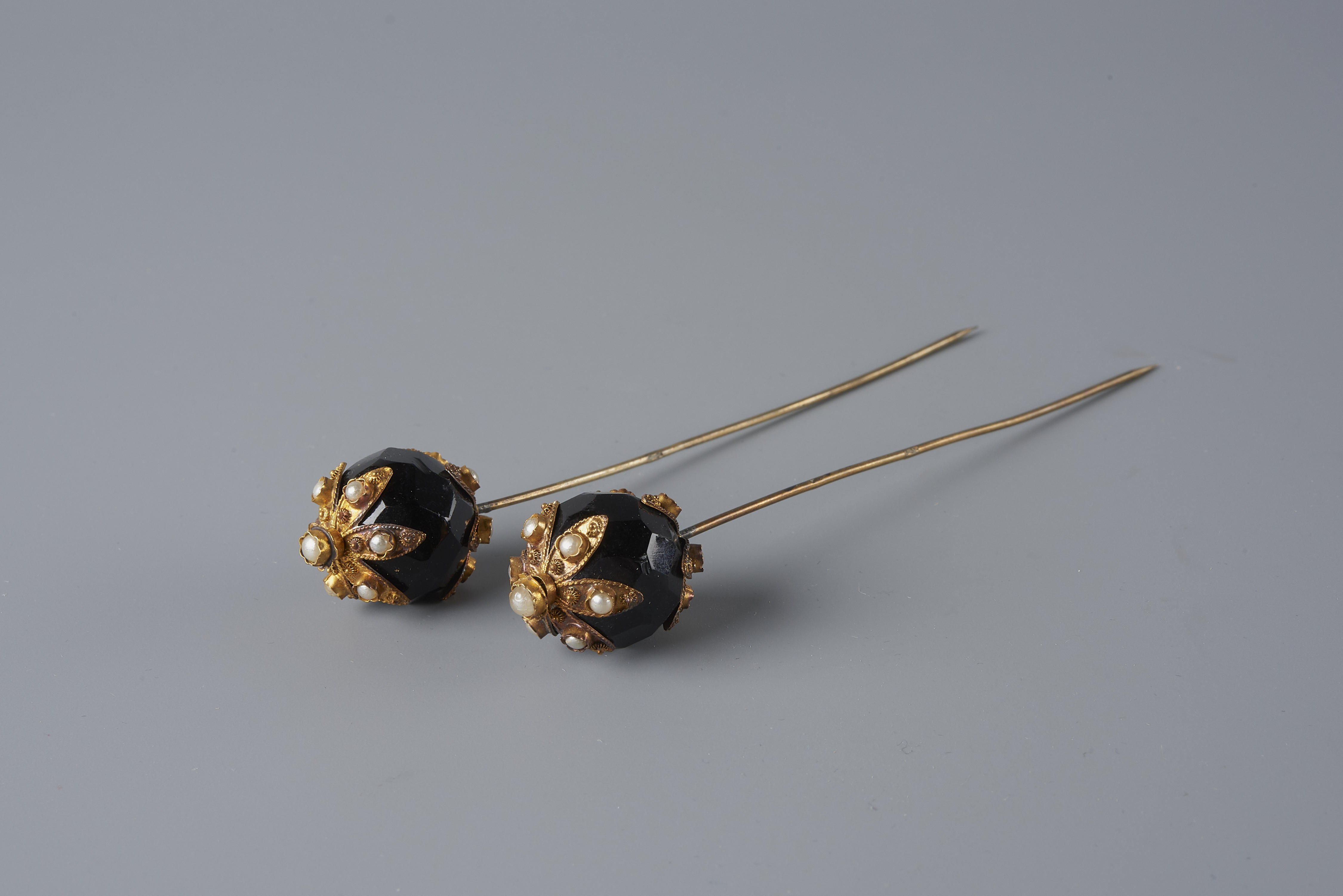 Paar gouden 'bijenkorfspelden', Nieuw- en Sint Joosl...