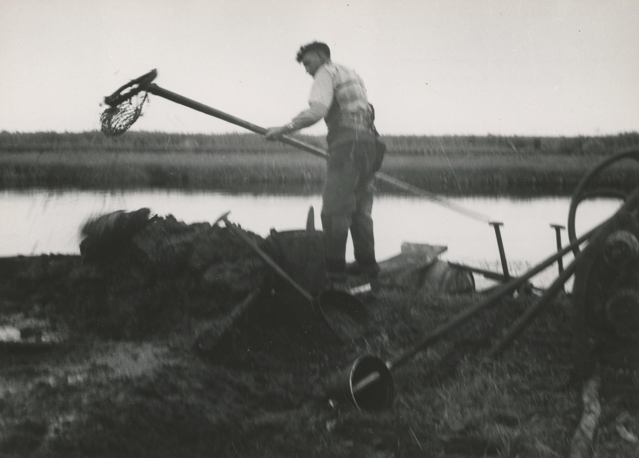 Veentrekker bij Oldemarkt, 1940 (zwart-wit foto)