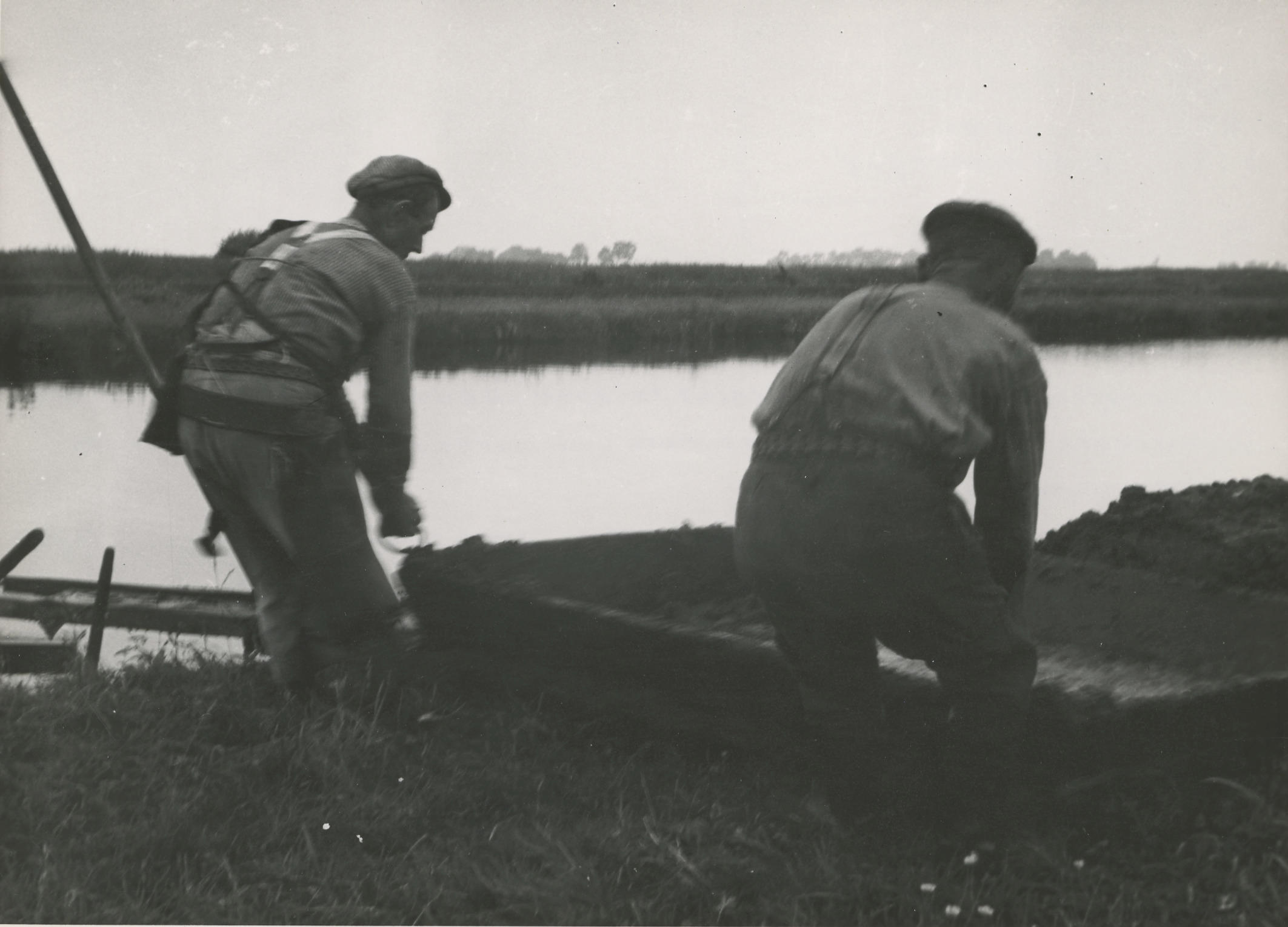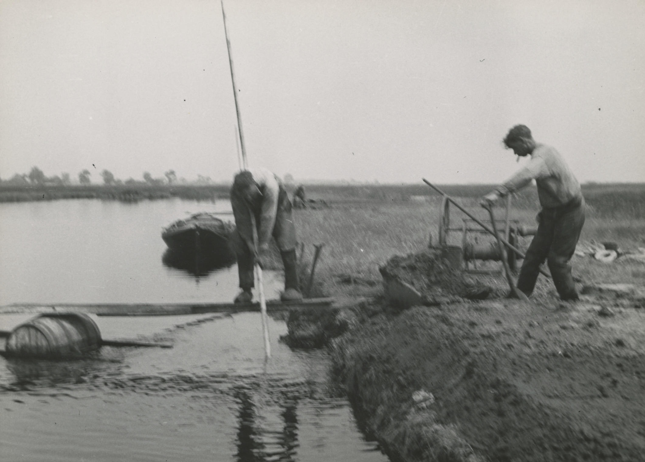 Schaft tijdens turfwinning, Oldemarkt, 1940 (zwart-w...