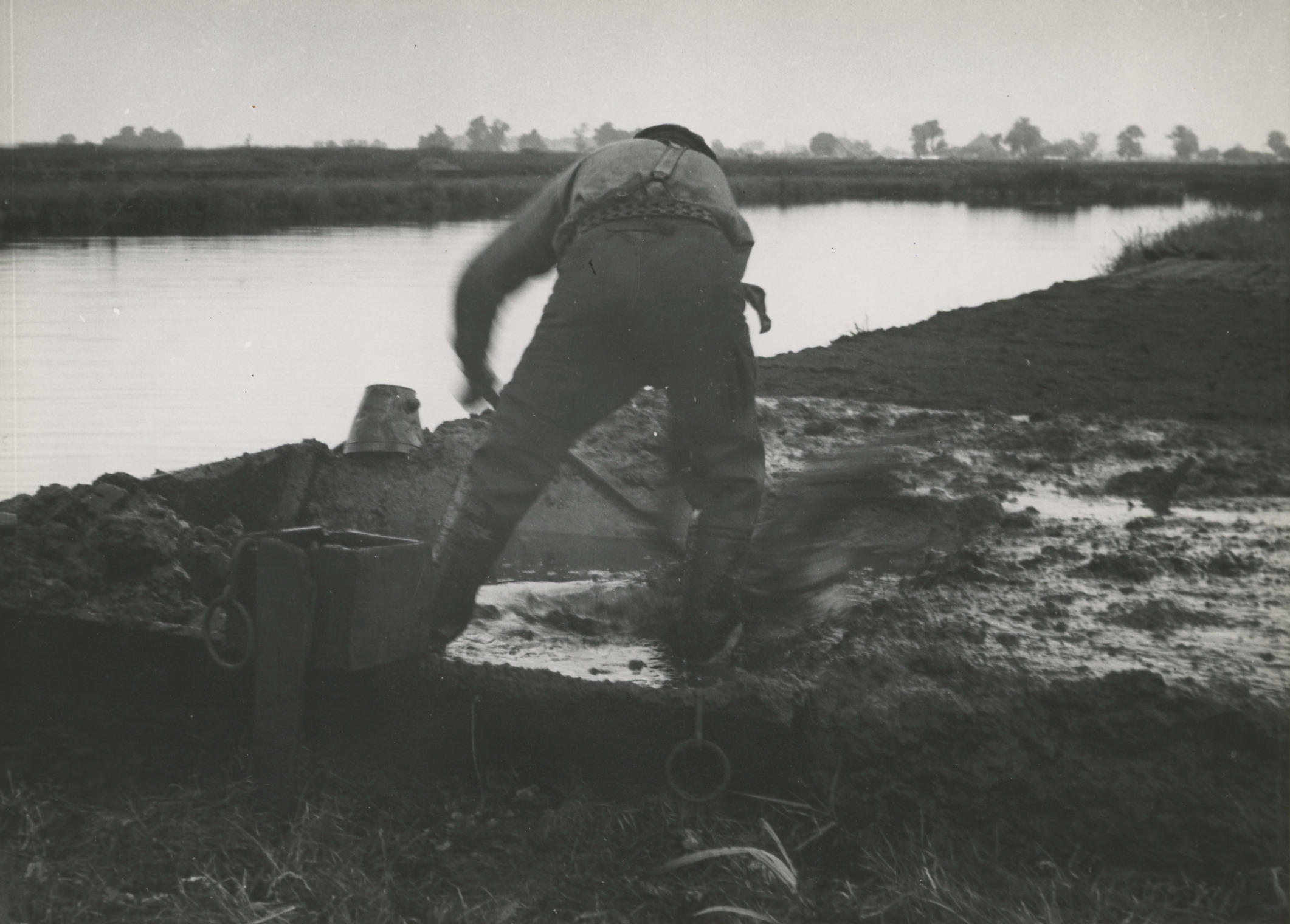 Veenmenger bij Oldemarkt, 1940 (zwart-wit foto)