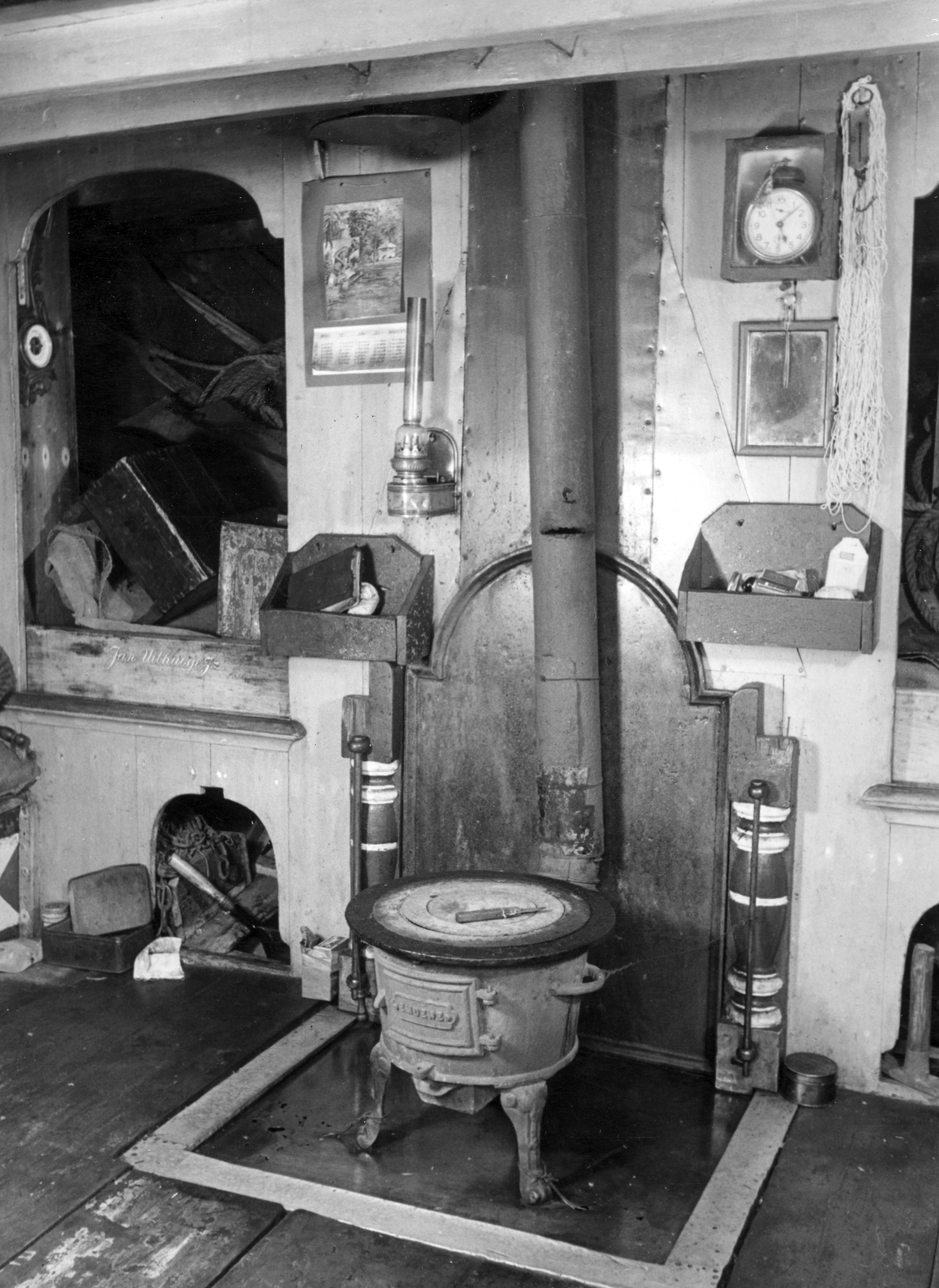 Vooronder van botter MK 63, Marken, 1943 (zwart-wit ...