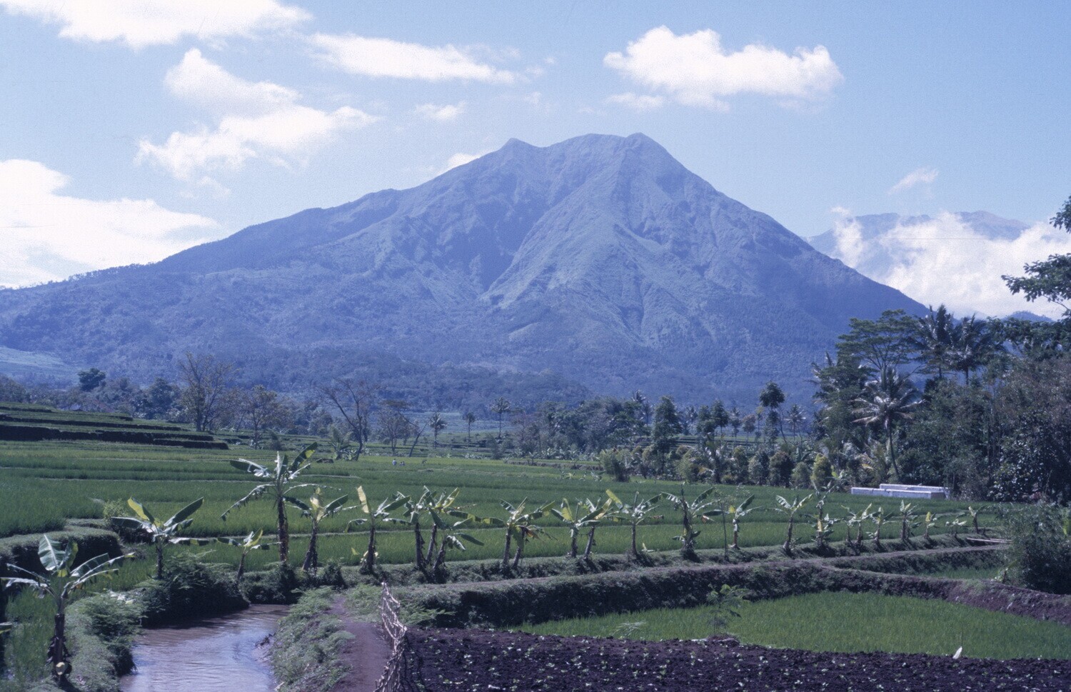 Midden Java. Landschap met de berg Sindoro op de ach...