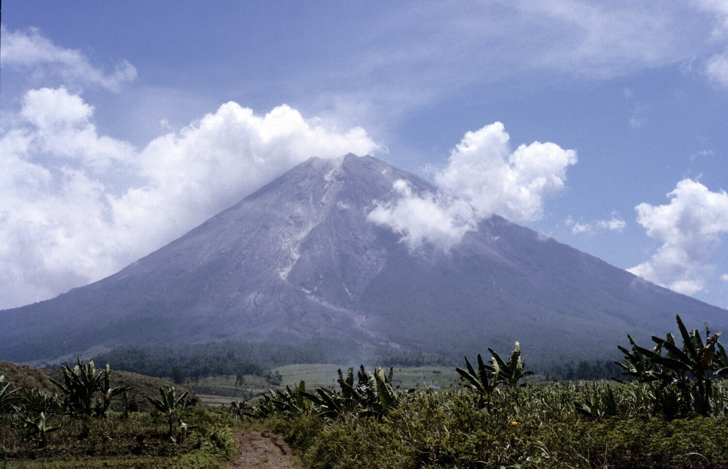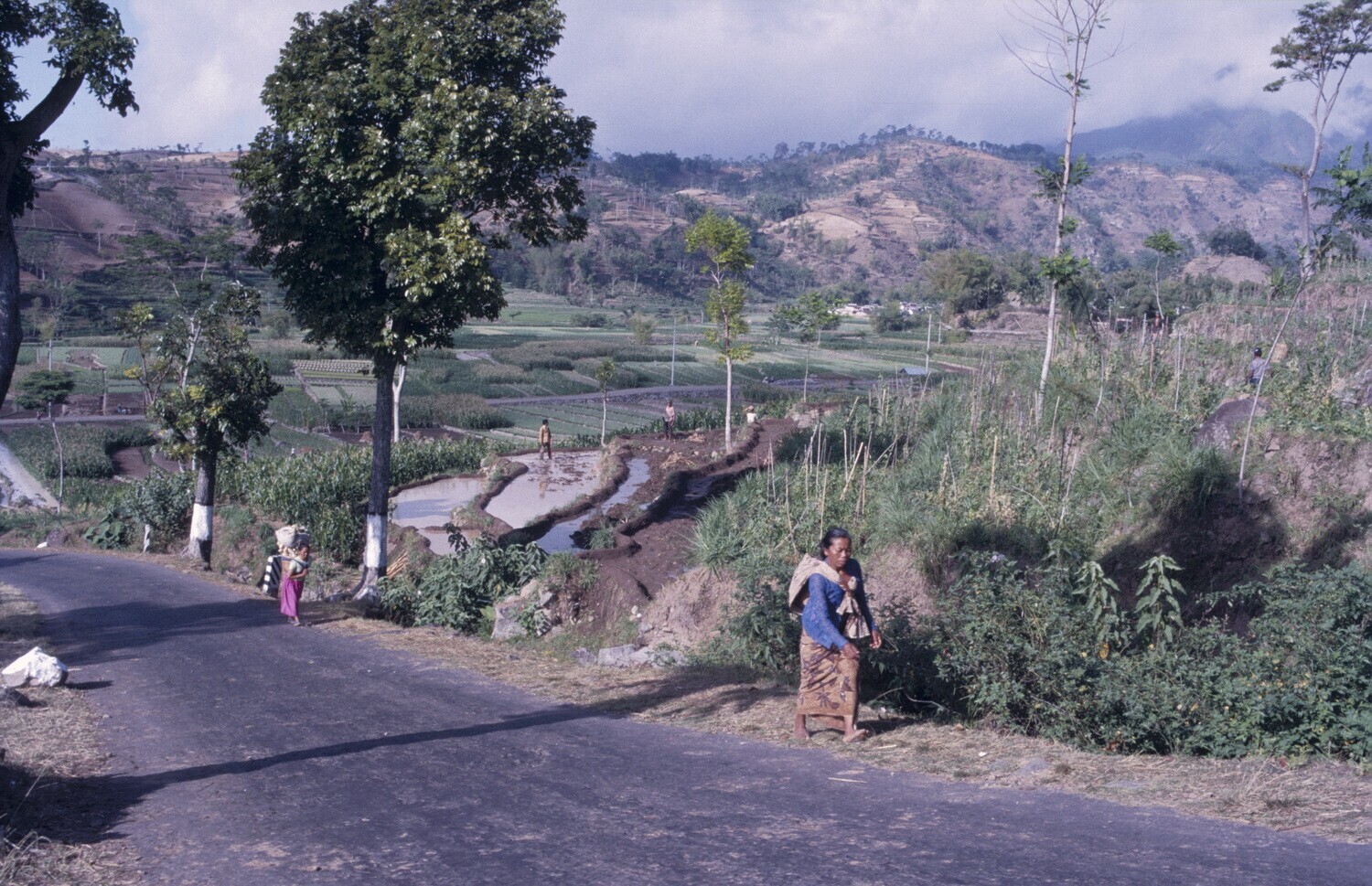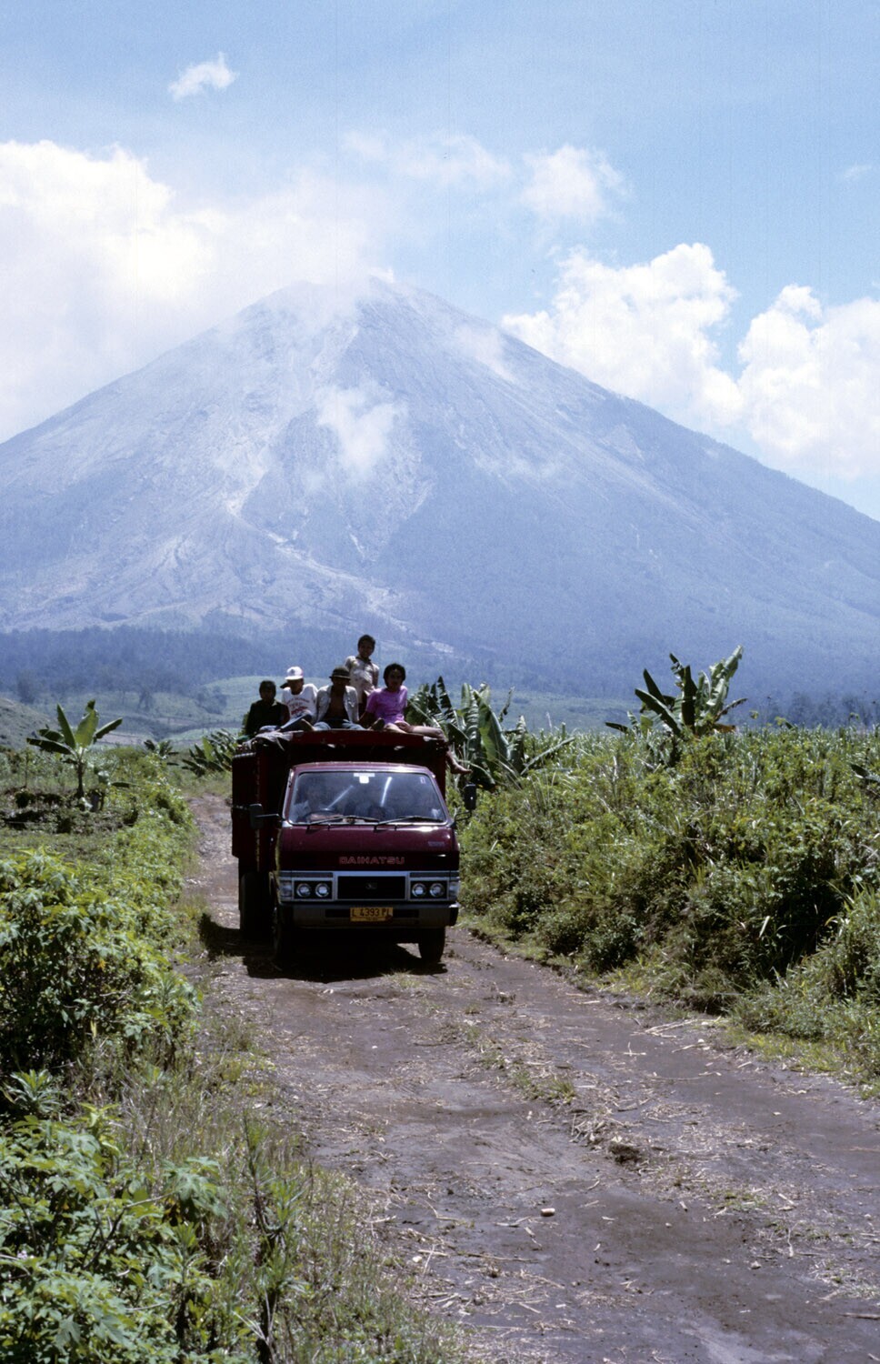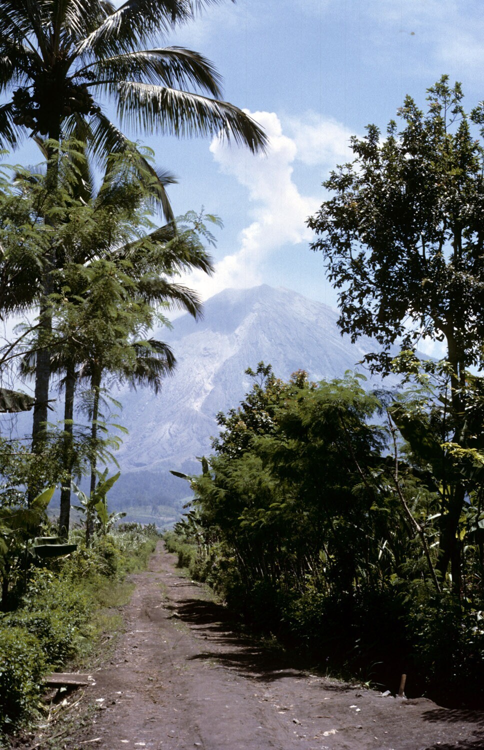 Oost Java. Een landweggetje dat naar de vulkaan Arga...
