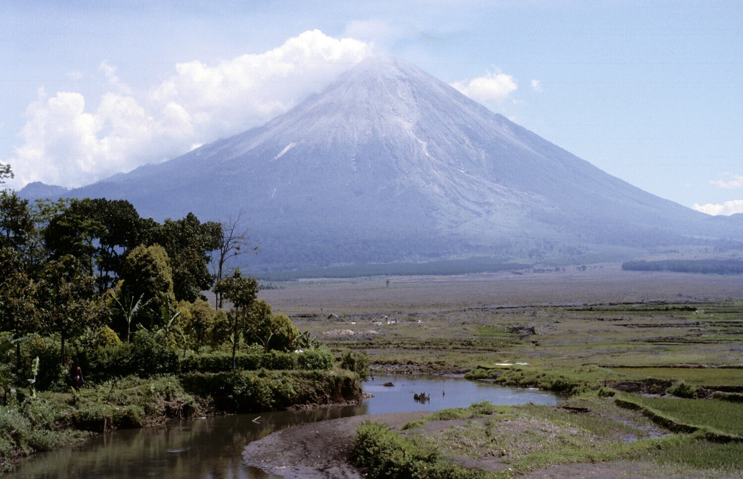 Midden Java. Landschap met de berg Soembing op de ac...