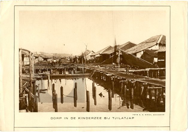 Dorp in de Segara Anak (Kinderzee) bij Tjilatjap, Ja...