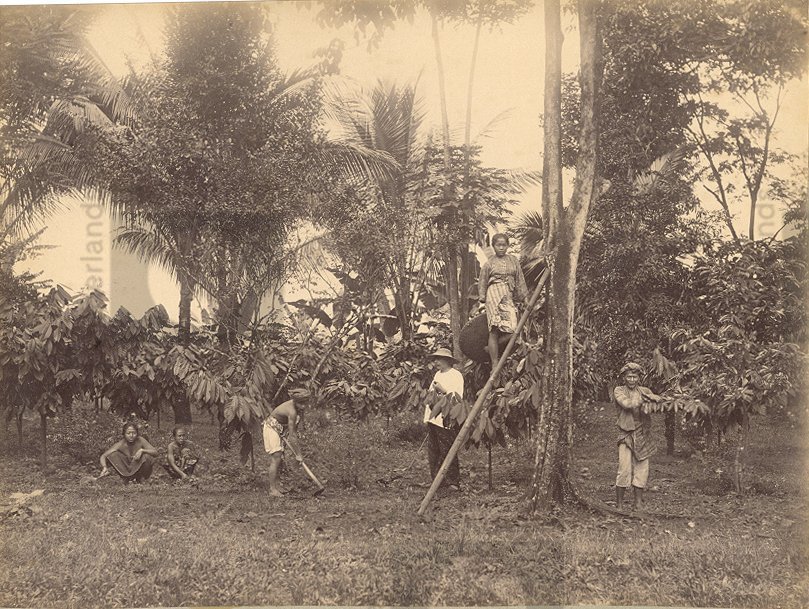 Cacao plantage, oogsten, Bogor, Java, Indonesië (188...