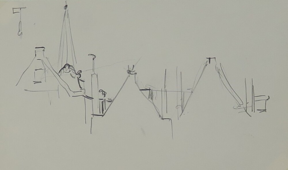 Hand met dunne hengel, voorstudie kalenderplaat 'Tre...