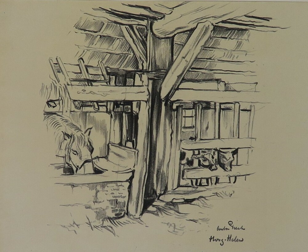 Detailschetsen, voorstudie kalenderplaat Bloemenstal
