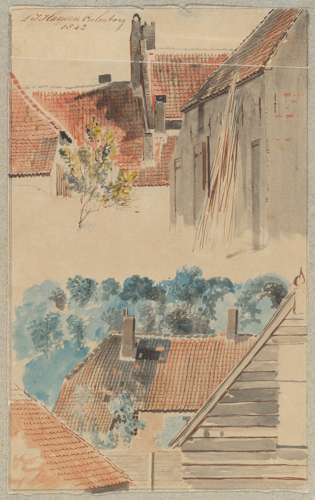 Aquarel, voorstellende dakpartijen te Culemborg, ver...