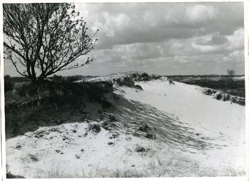 Foto in zwart-wit van een zandverstuiving door J.D. ...