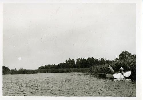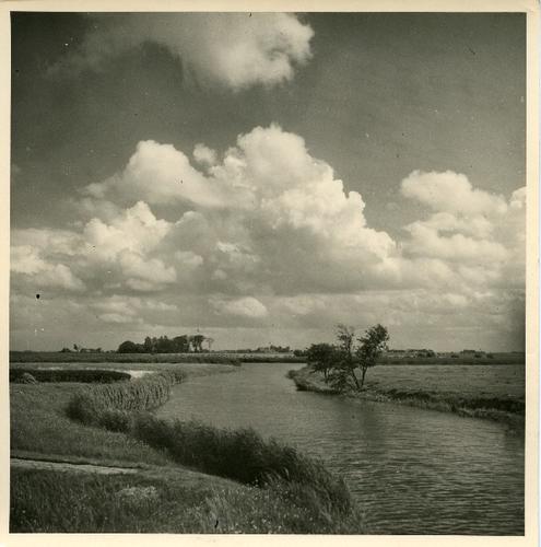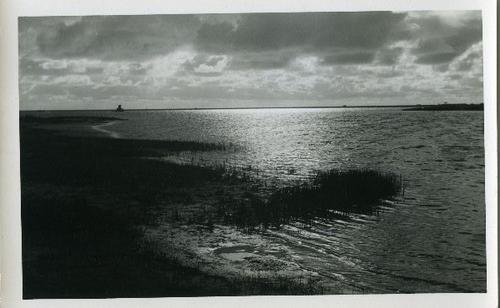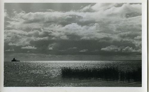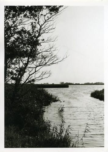 Prentbriefkaart in zwart-wit van de IJsselmeerkust b...
