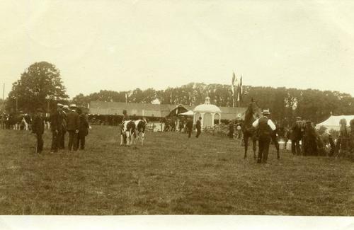 Prentbriefkaart in sepia van de landbouwtentoonstell...