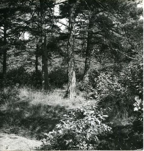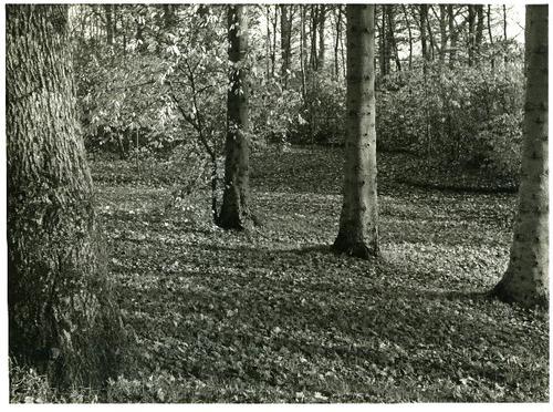 Foto in zwart-wit van gemengd bos door J.D. de Jong,...