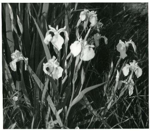 Foto in zwart-wit van gele lis in bloei door J.D. de...