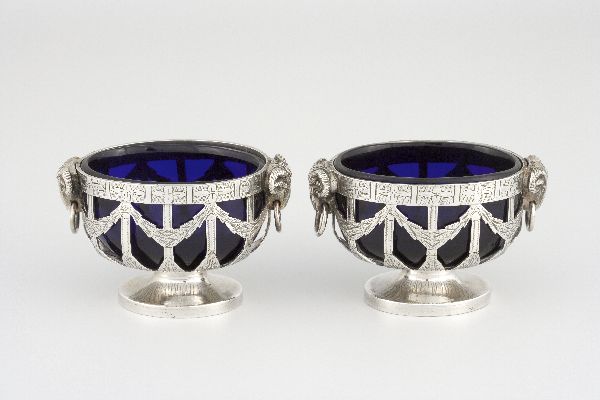 Twee zoutvaten met glazen bakjes, houder opengewerkt...