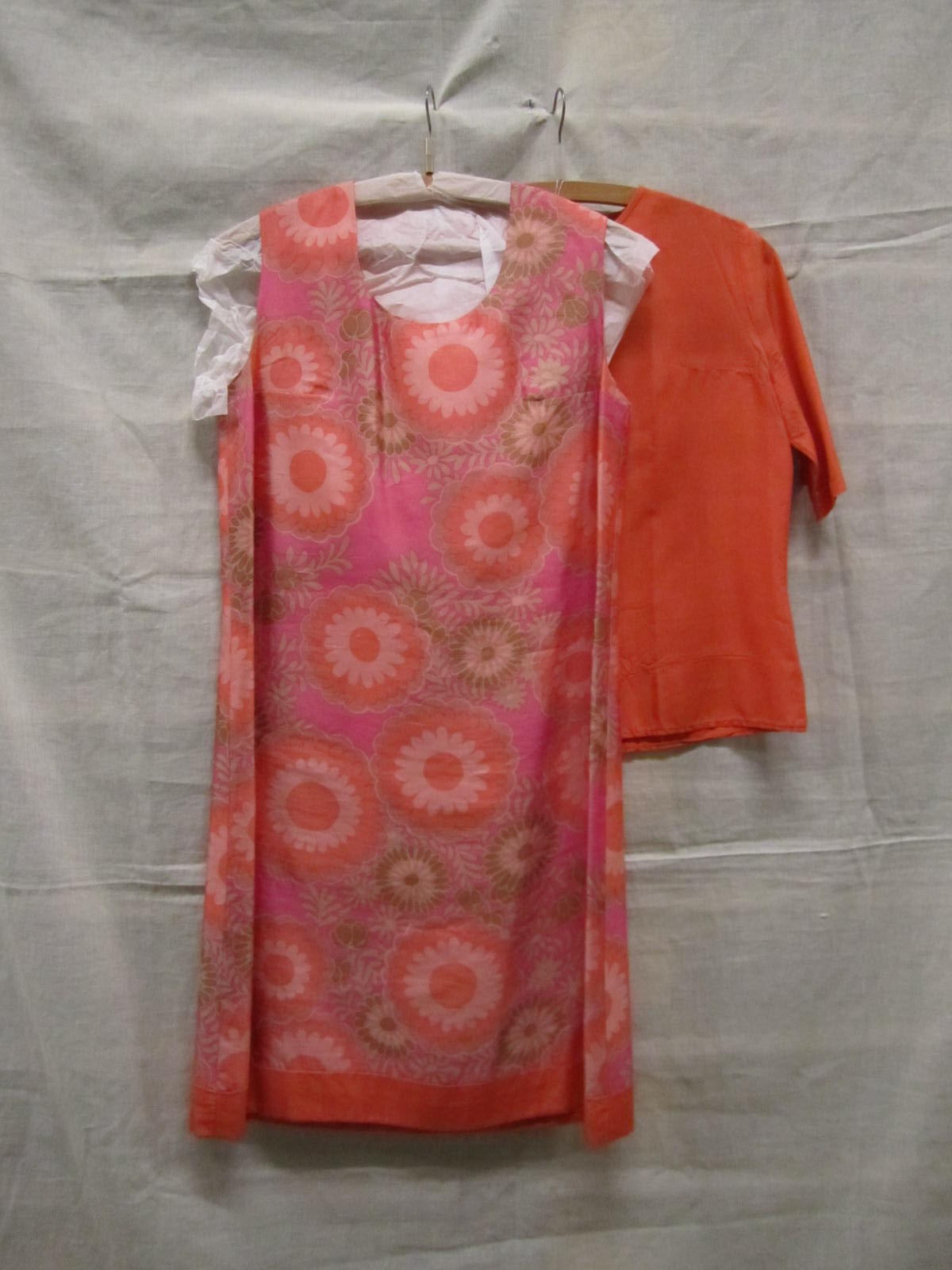 Overhemdjurk en ceintuur met groen/beige/wit dessin ...