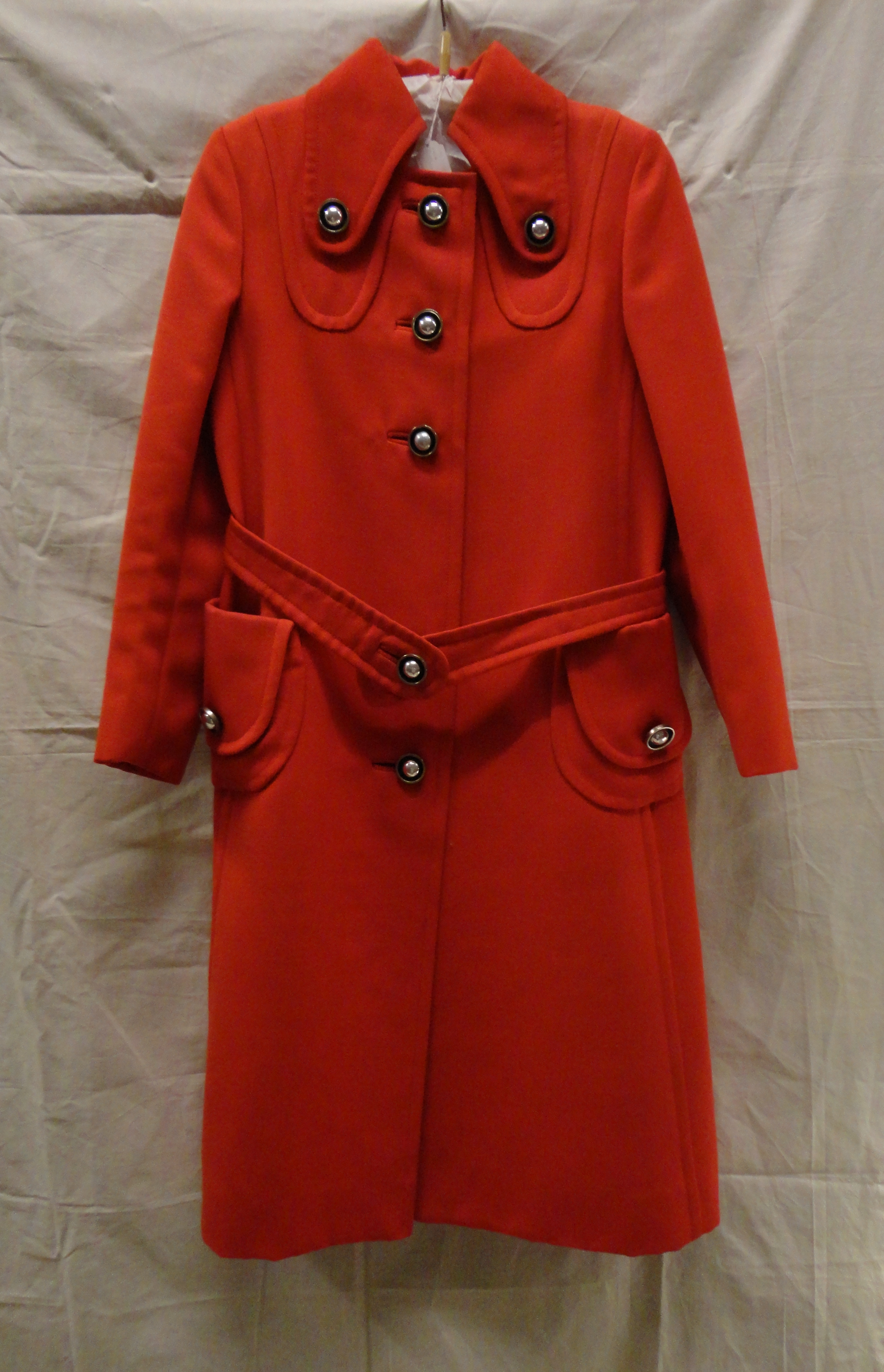 Mantel met ceintuur van rode wol, rond afgewerkt