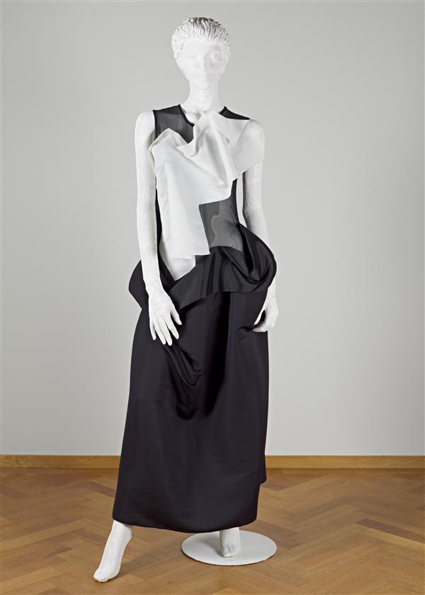 Jurk van doorschijnend zwart nylon met gestikte bane...