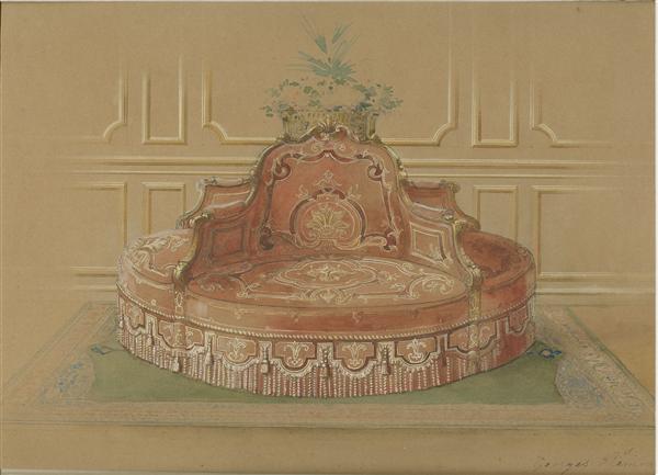 Schetsontwerp voor een bank met stoffering (uit de m...