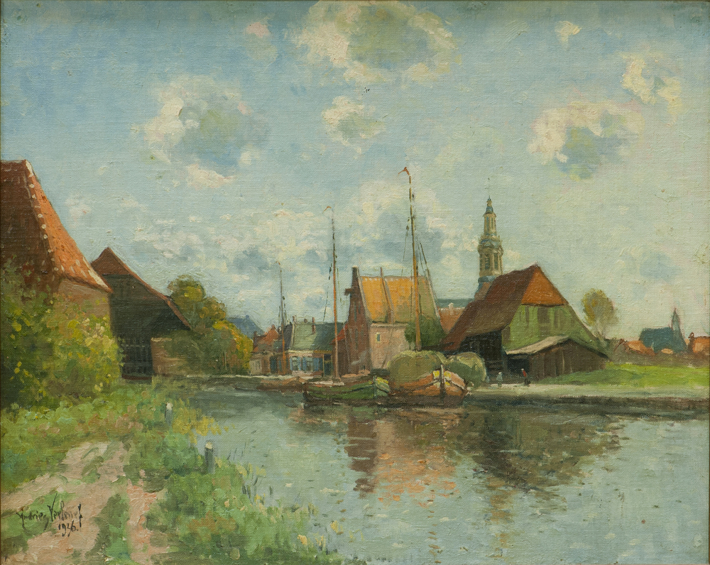 Schilderij met daarop de hoek Langestraat-Kerkstraat...