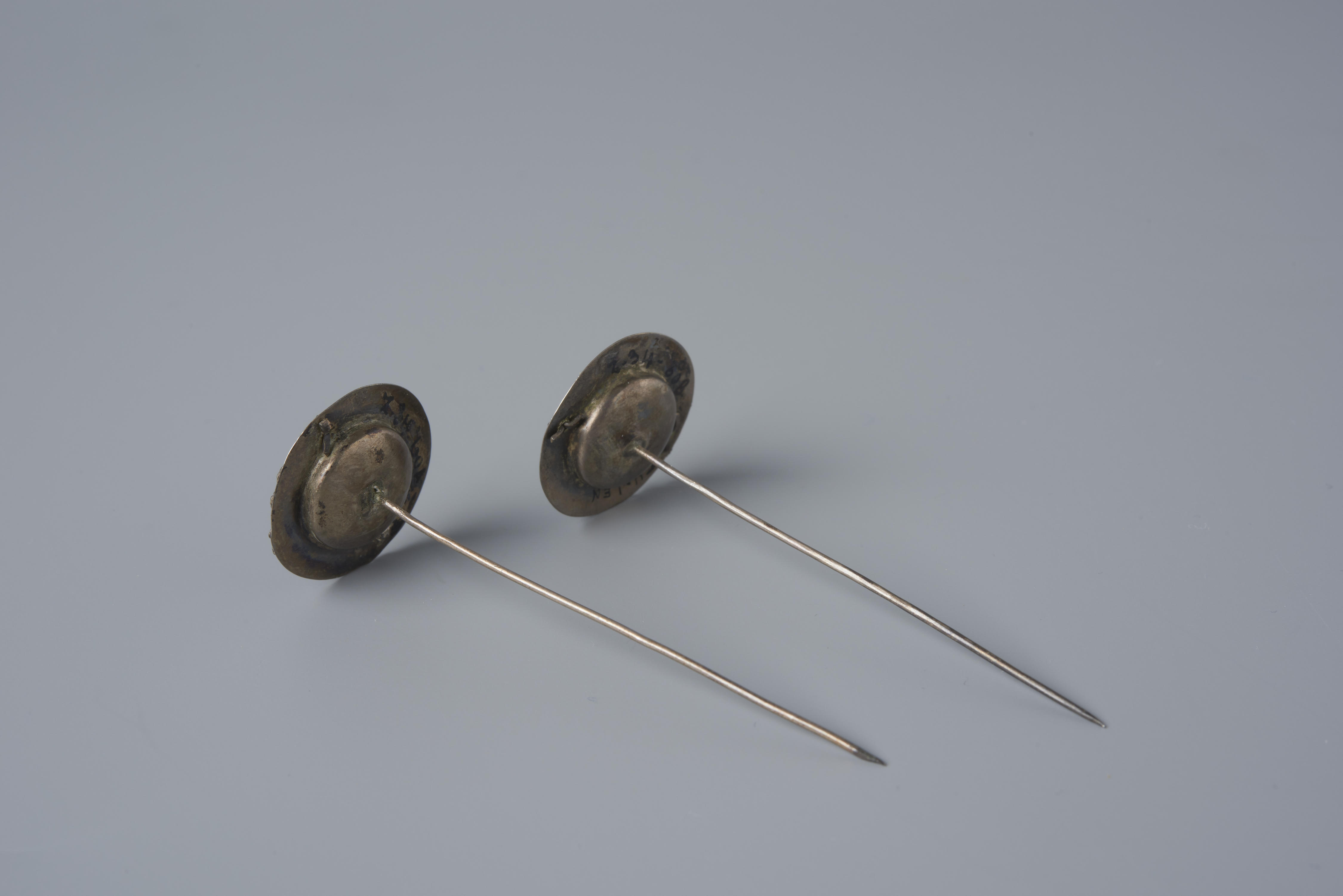 Paar zilveren keelknopen, Friesland, circa 1850