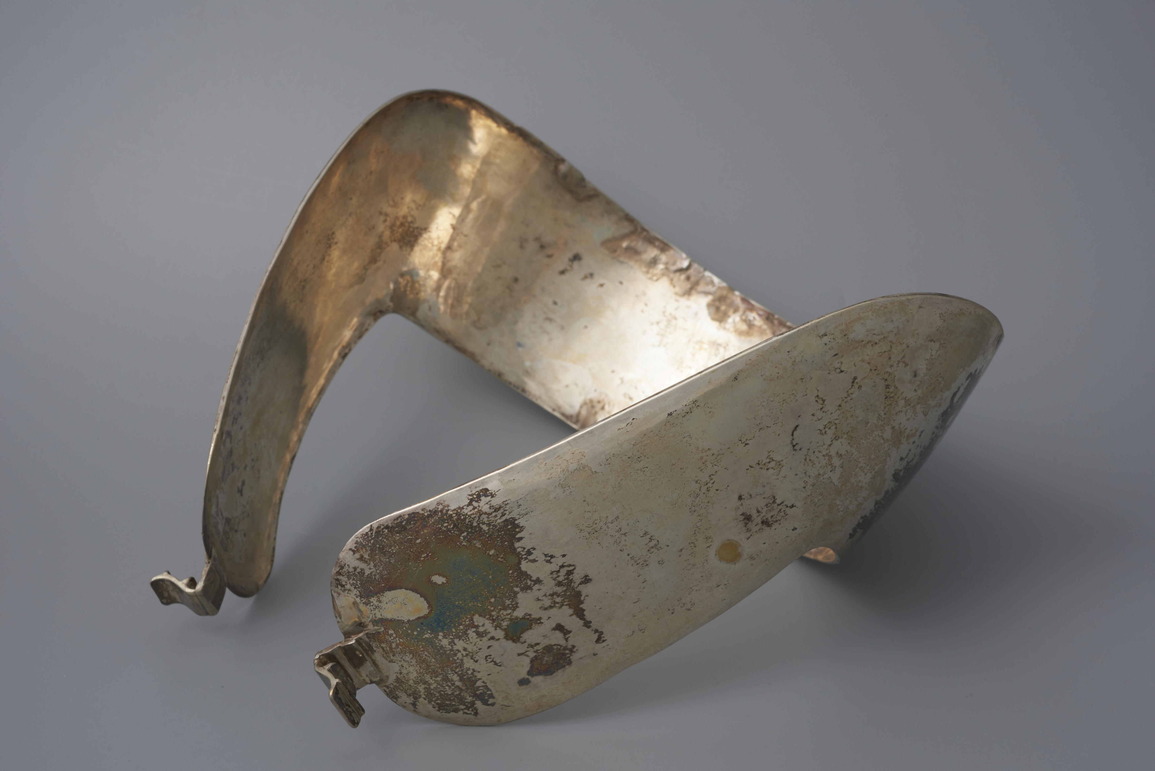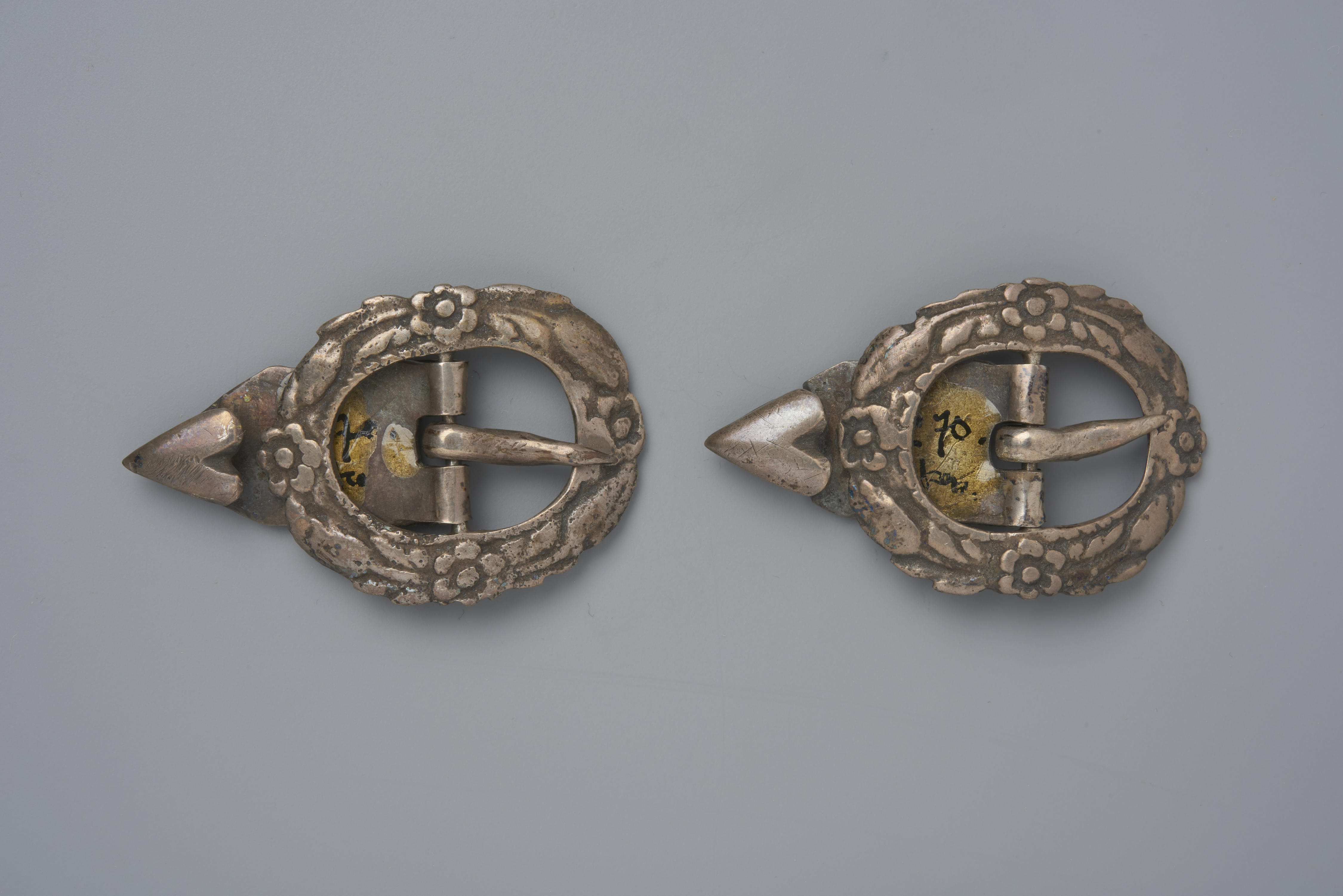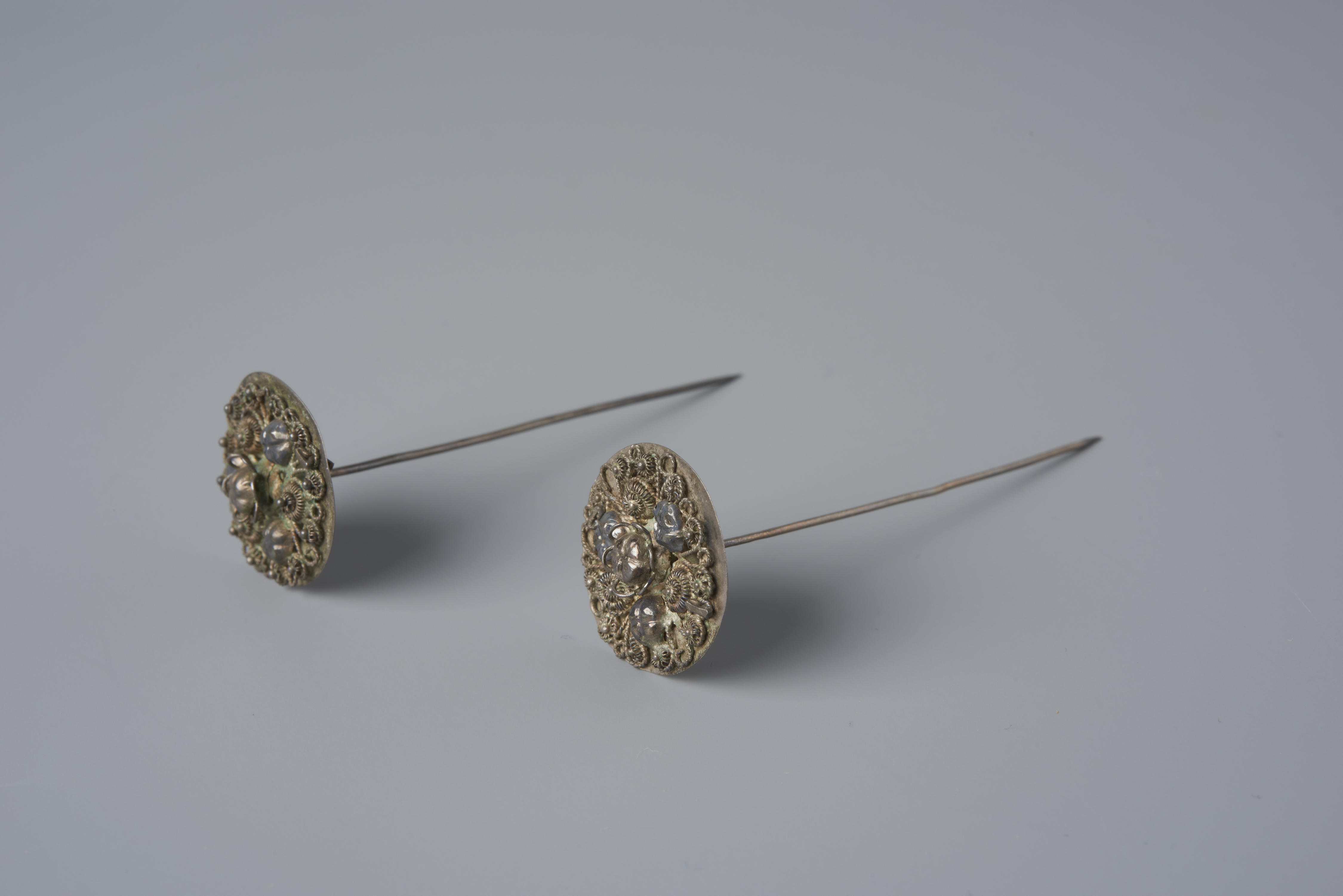 Paar zilveren kapspelden bij rouwdracht, Tholen, cir...