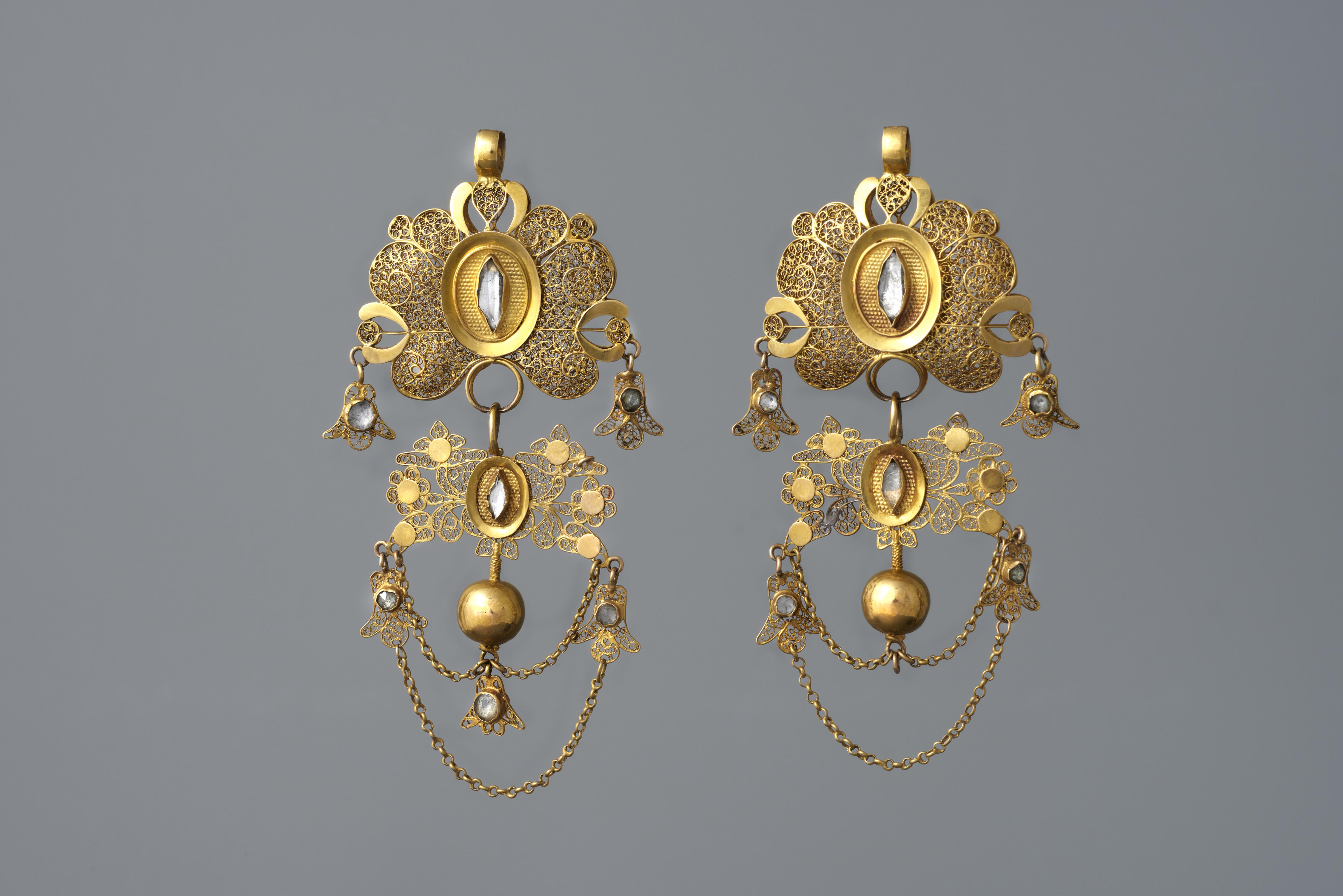 Paar gouden kapspelden, Schouwen, 1853–1906