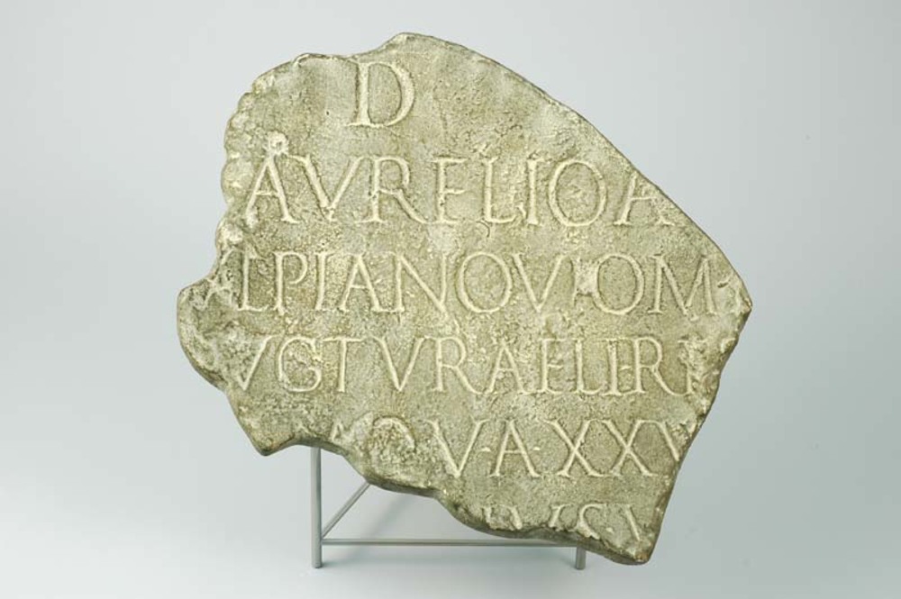 Afgietsel in gips van een fragment van de grafsteen ...