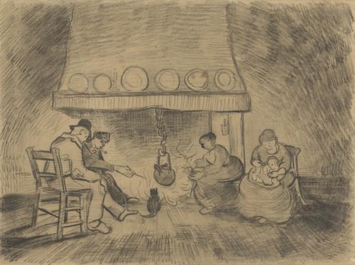 Figuren bij de haard