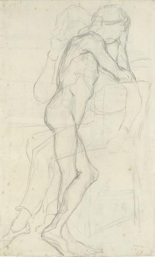 Staand mannelijk naakt en zittende figuur (naar Bargue)