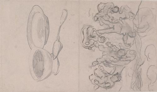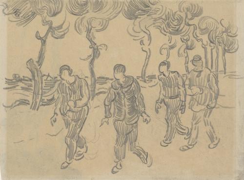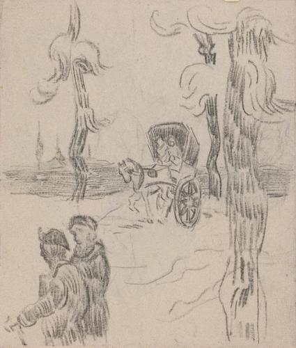 Landschap met cipressen en studies van figuren