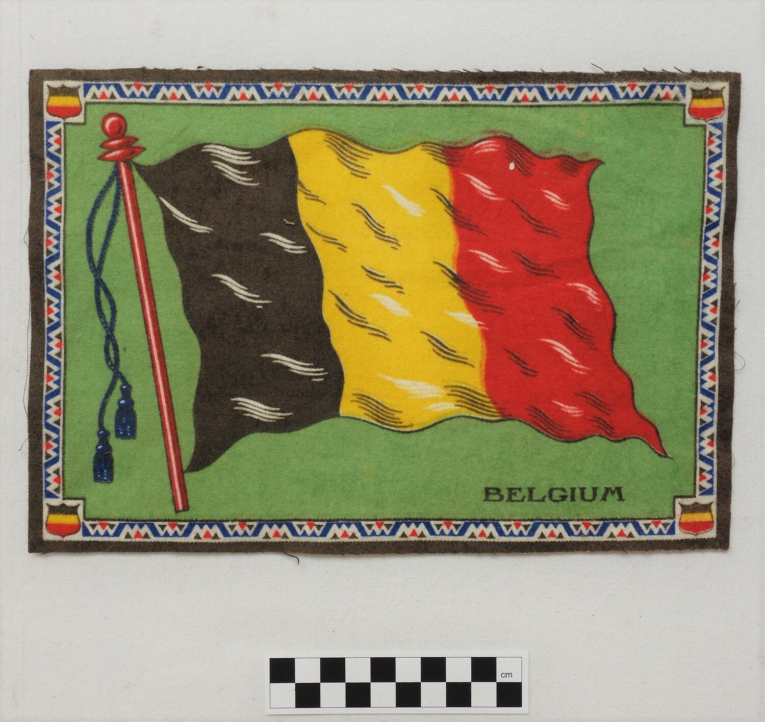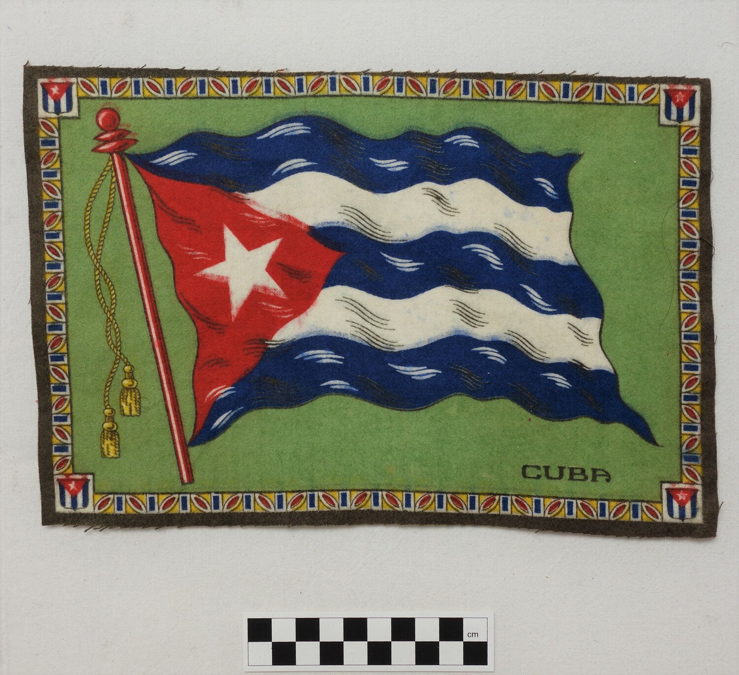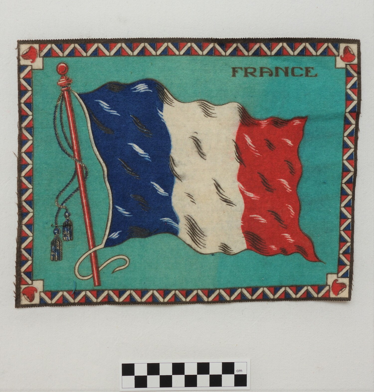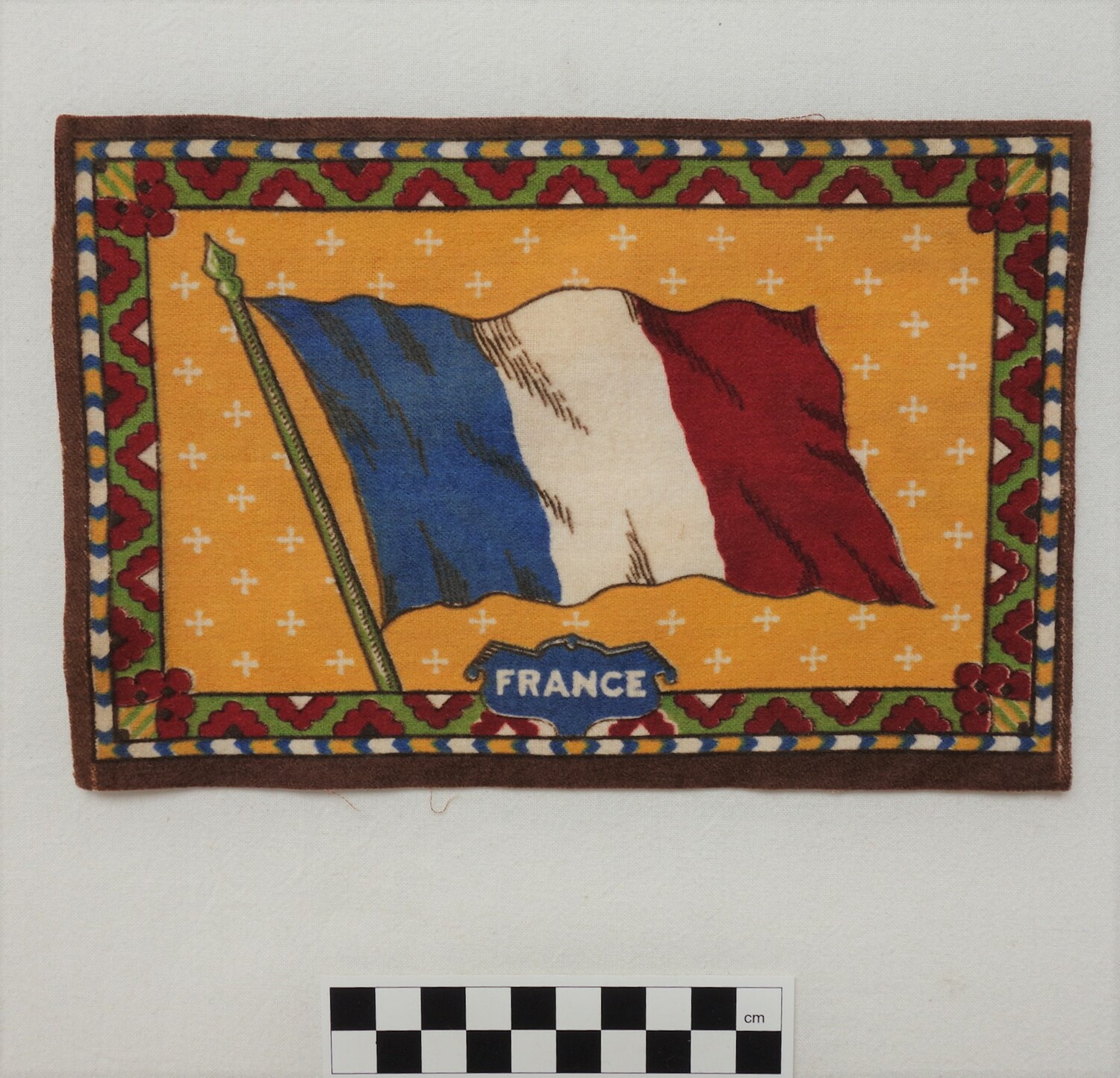 Factory woven and printed cloth appliqué. (1)