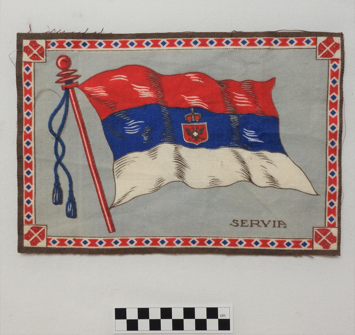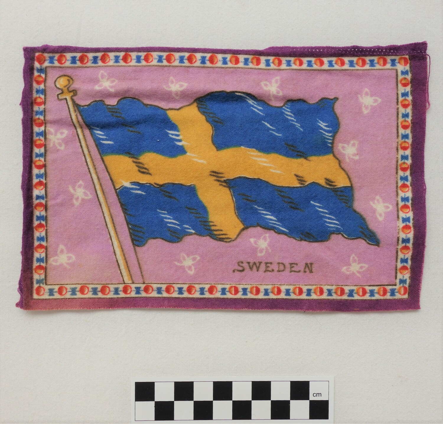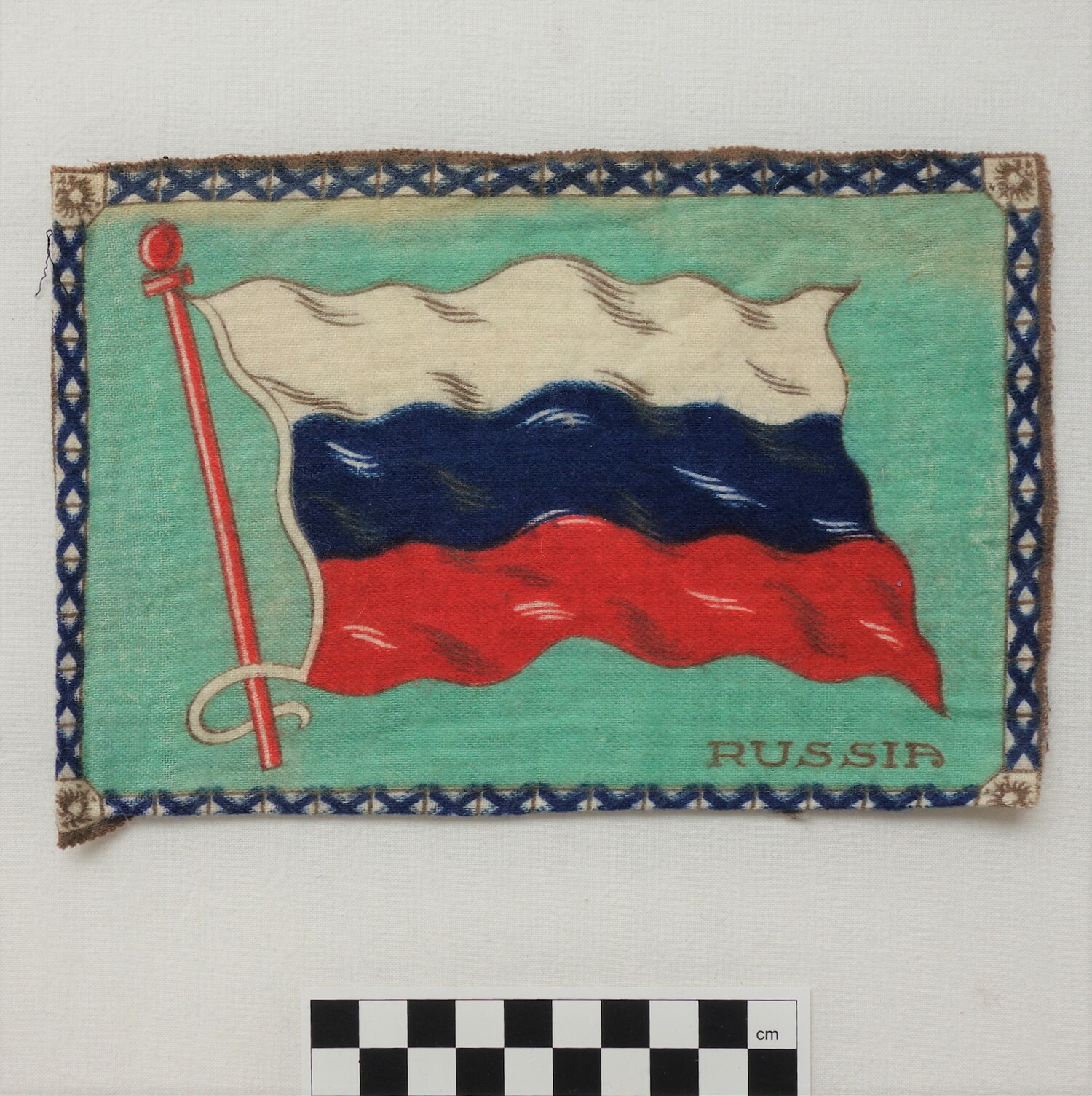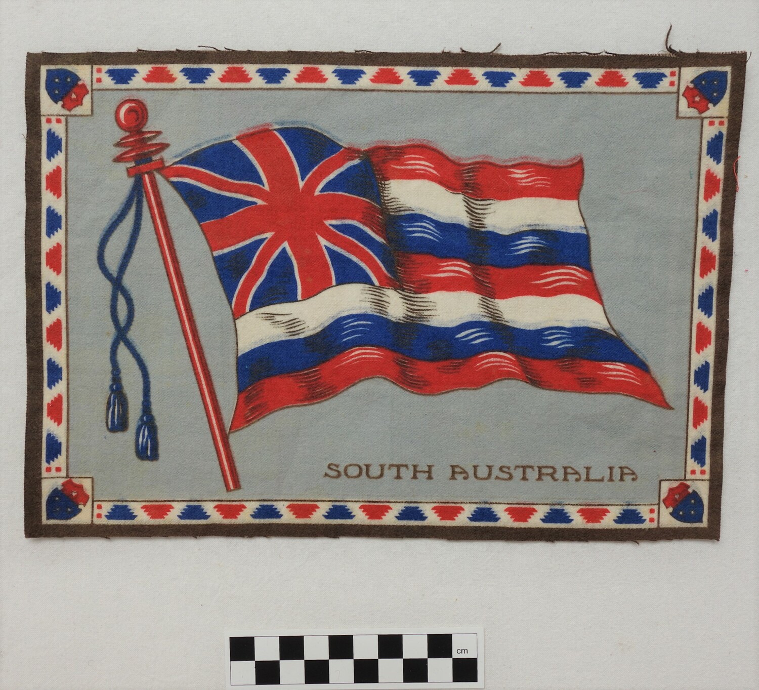 Factory woven and printed cloth appliqué. (1)
